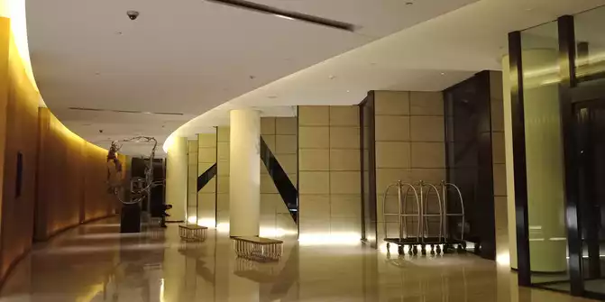 Checked in to the East Hotel in Jiuxianqiao, Chaoyang District, Beijing in the early morning. This is a corner of the hotel.