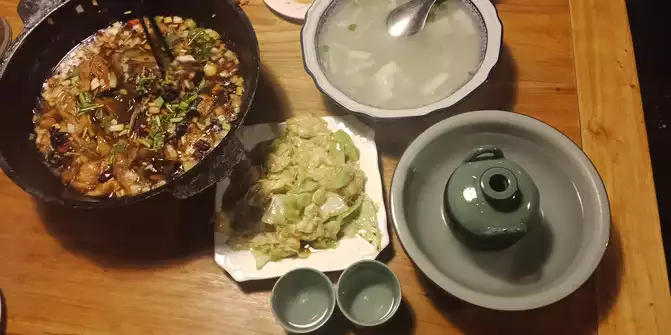Passing by a socialist countryside, we saw the copper pot hot pot meat and our mouths watered. Socialism is great~