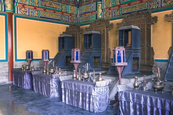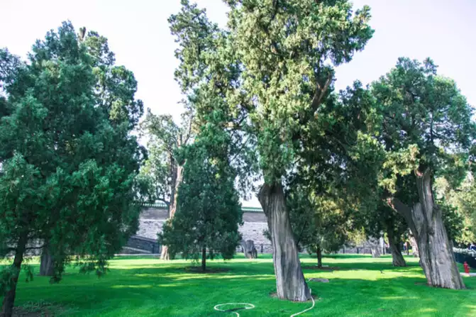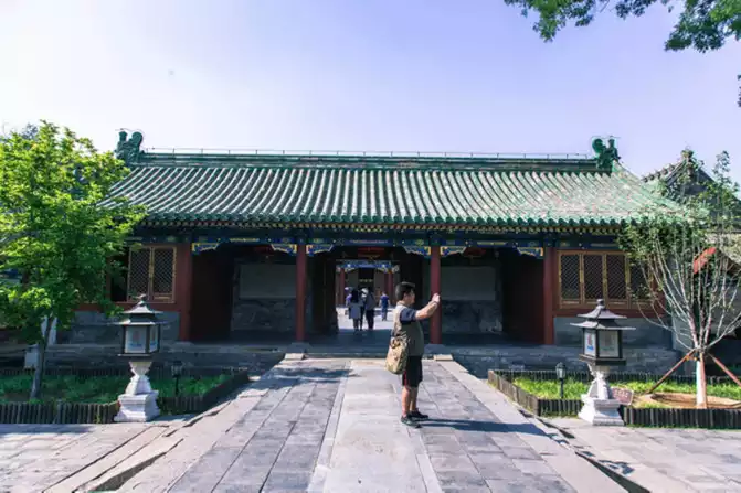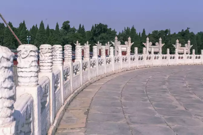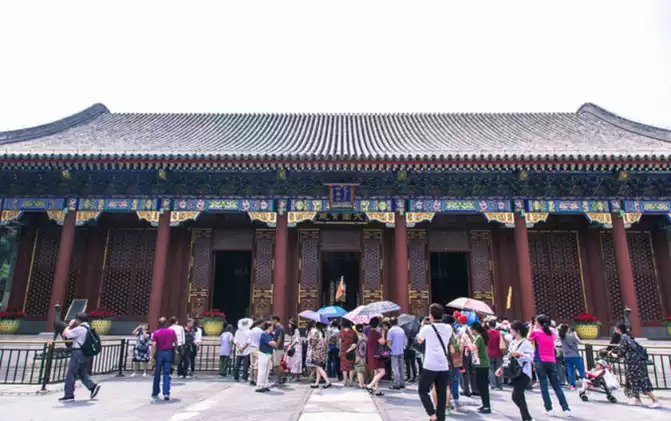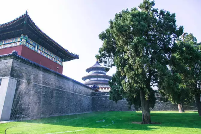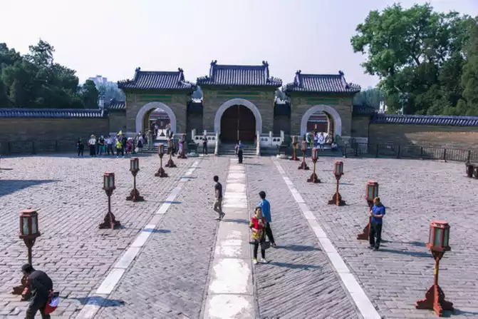 The Temple of Heaven is located in southern Beijing, east of Yongdingmennei Street in Dongcheng District. It covers an area of approximately 2.73 million square meters. The Temple of Heaven was first built in 1420, the 18th year of the Yongle reign of the Ming Dynasty. It was renovated and rebuilt during the reigns of Emperors Qianlong and Guangxu of the Qing Dynasty. It served as a place for emperors of the Ming and Qing dynasties to offer sacrifices to the Emperor of Heaven and pray for good harvests. The Temple of Heaven, collectively known as the Circular Mound Altar and the Prayer Hall Altar, consists of two walls, forming the Inner and Outer Altars. The walls are circular in the south and square in the north, symbolizing the roundness of heaven and the squareness of earth. The main buildings are located in the Inner Altar, with the Circular Mound Altar to the south and the Prayer Hall Altar to the north. The two altars are situated on a north-south axis, separated by a wall. The main buildings in the Circular Mound Altar include the Circular Mound Altar, the Imperial Vault of Heaven, etc., and the main buildings in the Altar of Prayer for Good Harvests include the Hall of Prayer for Good Harvests, the Imperial Ancestral Hall, and the Gate of Prayer for Good Harvests.