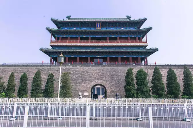 Zhengyangmen, commonly known as Qianmen, Qianmenlouzi, and Daqianmen, was originally named Lizhengmen. It served as the southernmost gate of Beijing's inner city during the Ming and Qing dynasties. It lies at the southernmost end of Tiananmen Square, on Beijing's north-south central axis, south of the Chairman Mao Memorial Hall. Construction began in 1419, the 17th year of Emperor Yongle's reign during the Ming Dynasty, and was one of the "Nine Gates of the Capital." It integrates the Zhengyangmen Tower, the Arrow Tower, and the Barbican, forming a complete ancient defensive system. Local chronicles record that the tower and the Arrow Tower were magnificent and tall, while the Barbican was imposing and majestic, representing a representative example of Beijing's ancient city wall architecture. Only the tower and the Arrow Tower remain today, making it the only relatively intact gate in Beijing. The tower houses the Beijing Folk Customs Exhibition Hall.
