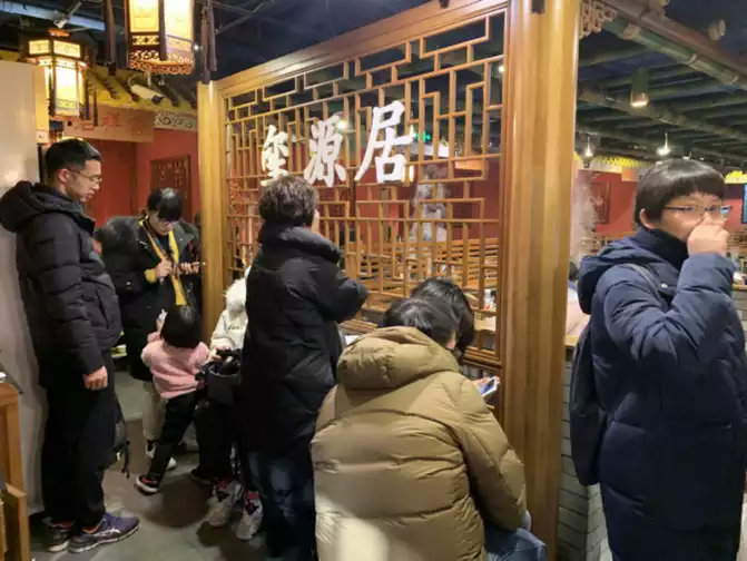 There are still many people queuing up for Xiyuanju Old Beijing Hot Pot.