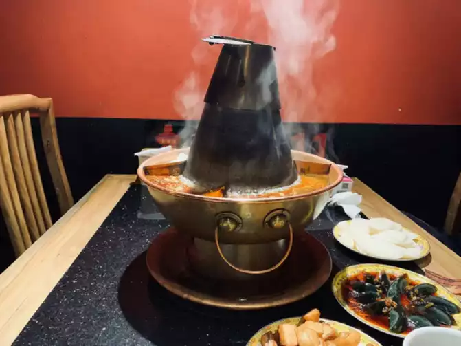 The hot copper pot of Xiyuanju Old Beijing Hot Pot is sizzling with heat. Where’s the meat? Put it in the pot quickly!