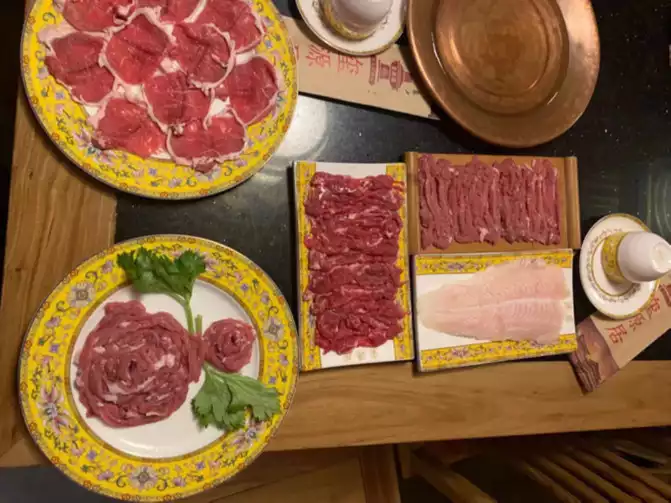 Xiyuanju Old Beijing Hot Pot This restaurant serves mutton and beef, and many of them are freshly cut, which has a richer taste. I like it very much! Xiyuanju Old Beijing Shabu-Shabu Lamb is available in freshly cut meat and machine-cut frozen meat rolls. We didn't order the frozen meat rolls because they have their own ranch in the northern grasslands, and all their fresh lamb comes from there. The meat is delicate and a little fatty but not greasy. The lamb and melon strips are probably one of the restaurant's specialties, and are said to be a must-order dish for Beijing-style hot pot.