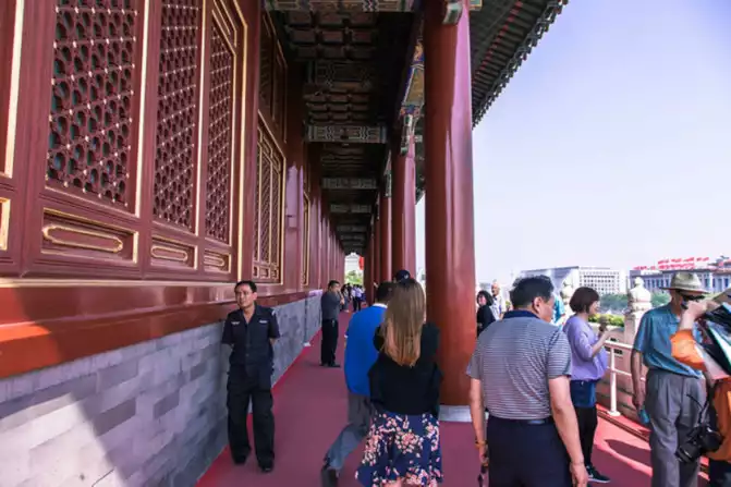 Normally, it's recommended to visit Tiananmen first and then the Forbidden City, because behind the Tiananmen Gate is the Duanmen Gate, and behind the Duanmen Gate is the entrance to the Forbidden City: the Meridian Gate (the one where the emperor is often beheaded in TV dramas).
