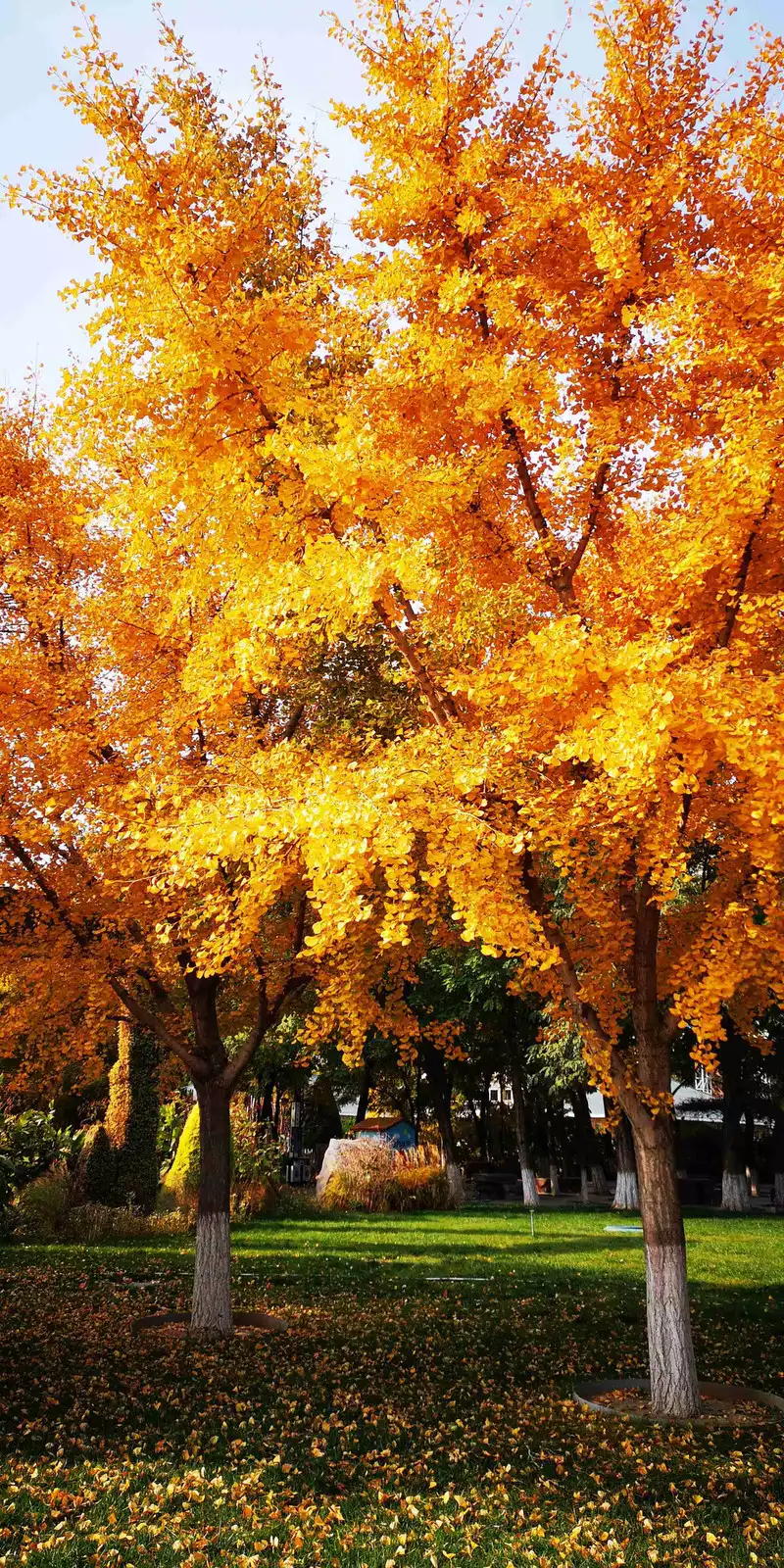 In the park, ginkgo leaves rustle down, covering the entire ground. The park is filled with ginkgo trees, making it worthy of being called the "most beautiful ginkgo park."