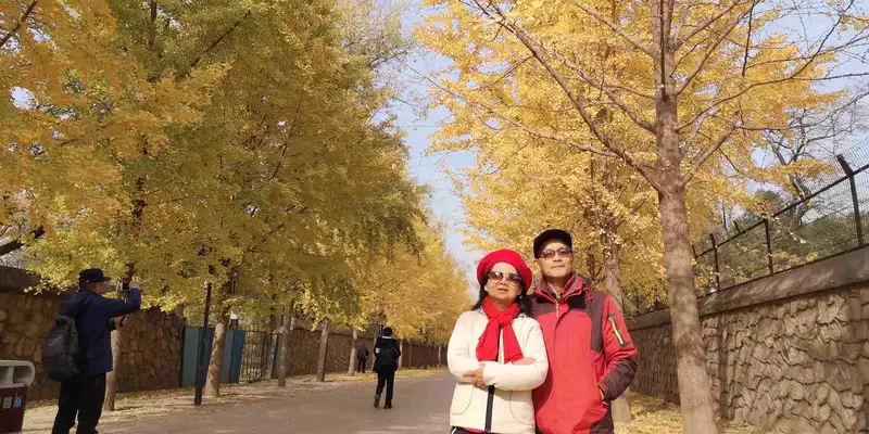 From late October to late November, a period of approximately 20 days, Beijing's ginkgo viewing season is at its peak. The city's many famous ginkgo avenues are breathtakingly beautiful. Yellow leaves, red walls, and blue skies create the hallmarks of autumn in Beijing. From mid-October to mid-November, a period of about 40 days, we visited more than a dozen places in Beijing to admire the colorful forests and red leaves, including Langfa City Forest Park, Juyongguan Great Wall, Zizhuyuan Park, Lianhuachi Park, Grand View Garden, Tianyuan Park, Taoranting Park, Old Summer Palace, Diaoyutai, Sanlitun East Fifth Street, Ditan Park, Lama Temple, Forbidden City, Fragrant Hills Park, Yuetan Park, Beigong Forest Park, Temple of Heaven Park, Jingshan Park, World Flower Garden, Caoqiao Scenic Area, and Wanshou Park (for details, please see my other work "Must-See Colorful Forests and Red Leaves in Beijing in Autumn").