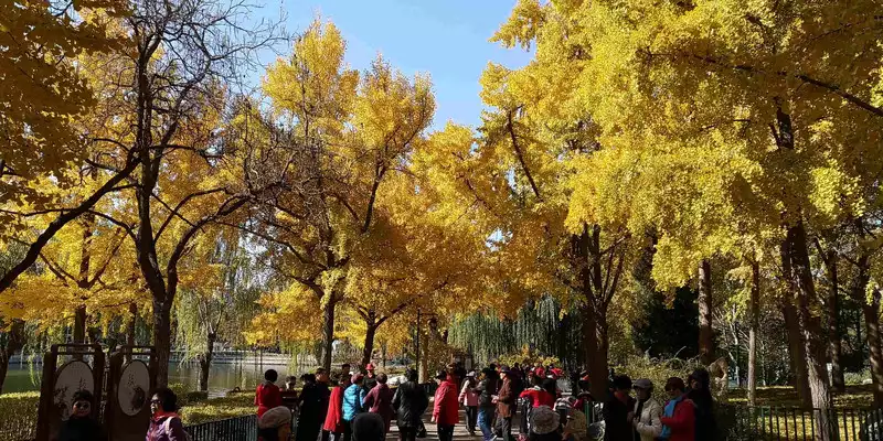 Although the ginkgo forest by the lake is surrounded by iron railings, it still cannot stop tourists from climbing over the railings and entering the ginkgo forest. There is also a small ginkgo forest near the south gate of Taoranting Park.
