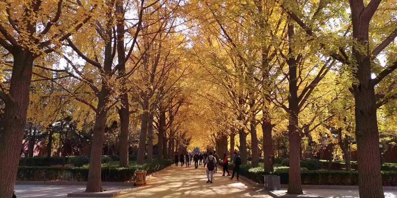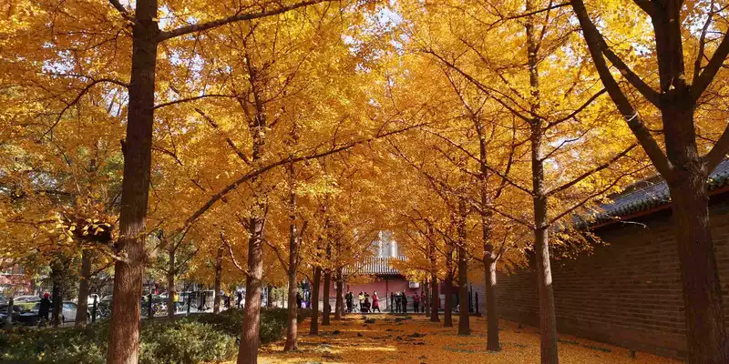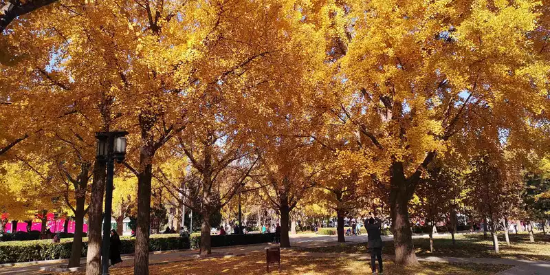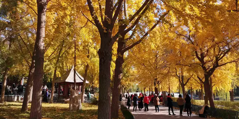 The most popular spot for viewing ginkgo trees every year is definitely Diaoyutai Ginkgo Avenue! This is Beijing's oldest and most famous place for viewing ginkgo trees.