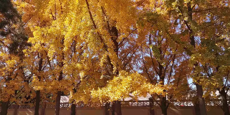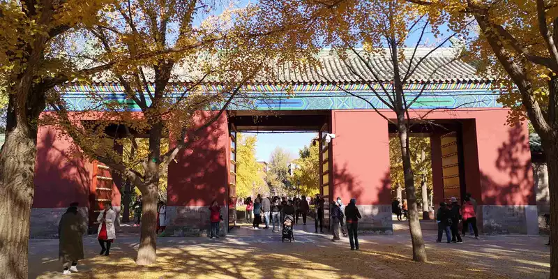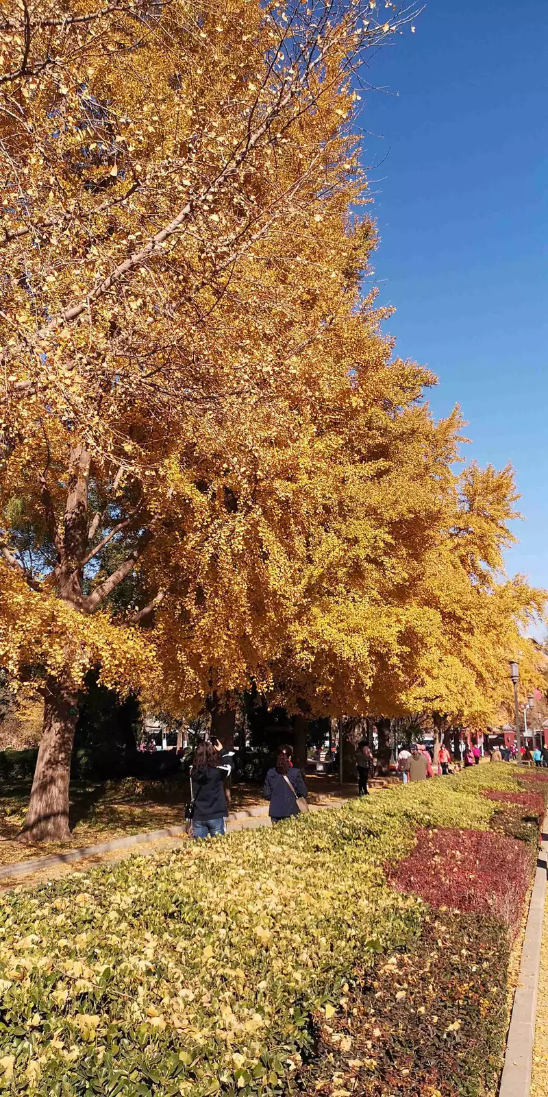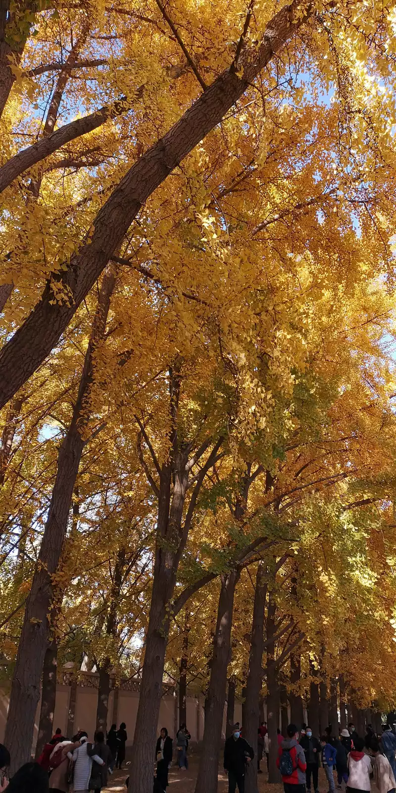 The Ginkgo Avenue in Ditan Park and the Ginkgo Avenue in Lama Temple are very close and can be viewed together. The ginkgo trees along Lama Temple's Ginkgo Avenue are in their prime, with each tree over 30 years old, resulting in a tall and dense appearance.