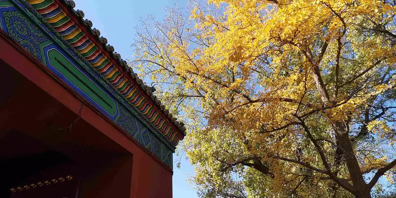 Longhegong Lama Temple Ginkgo Avenue is located at the entrance of the Lama Temple. The ancient architecture of the Lama Temple blends with the ginkgo leaves, making it the most "tranquil" ginkgo avenue.