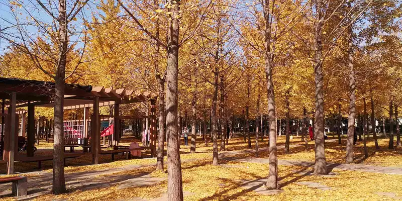 The park is filled with ginkgo trees, making it worthy of being called the "most beautiful ginkgo park."