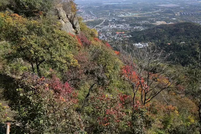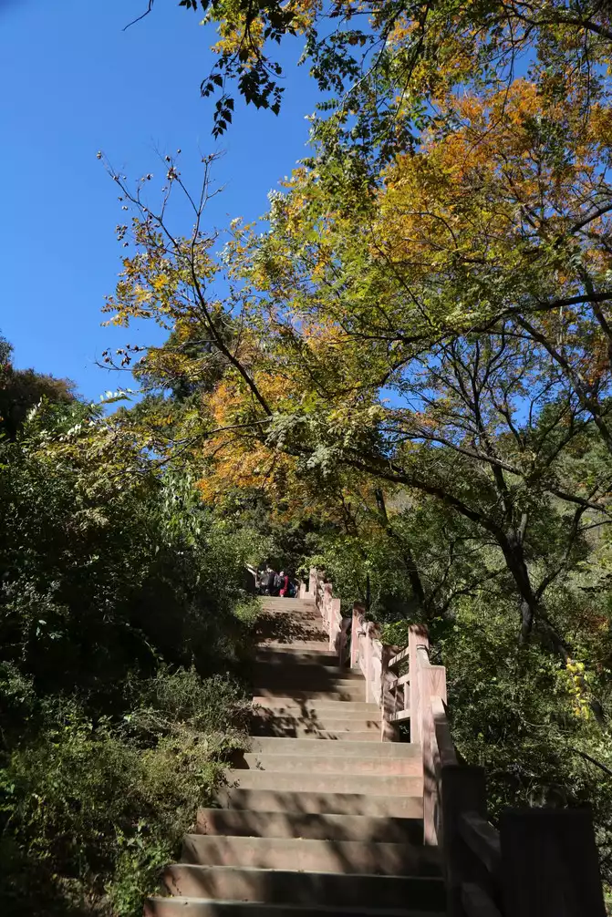 Outside the East Gate, a crowd was thronging. During the pandemic, online ticket reservations were available, and at a very cheap 10 yuan, many people scanned the QR code and purchased their tickets upon arrival, leading to a large crowd in the square. During the coronavirus pandemic, wearing a mask was mandatory for entry. Hiking the mountain while wearing a mask was both a necessity and a beautiful sight. Passing through the Zhongling Yuxiu Archway, we saw two trees laden with crimson leaves in front of the Qinzheng Hall, like a popular advertisement for a popular product, as if to announce that it's the perfect time to view the red leaves in Xiangshan, attracting many visitors to stop and take photos. Xiangshan, formerly known as Jingyi Garden, gets its name from the large rock on its summit shaped like an incense burner, often surrounded by clouds and mist that resemble wisps of incense rising into the sky. Xiangshan boasts breathtaking scenery. In autumn, the cotinus coggygria transforms, blanketing the mountain in vibrant crimson. Every mid-autumn season, tourists flock to the area; at peak times, the sight of the crimson leaves outnumbers the crowds. There are many routes up the mountain. Guided by Dong and Wu, we climbed along the route that leads to Shuangqing Villa, Hongguang Temple, Yuxiang Pavilion, Langfeng Pavilion, Xiangwu Cave, the platform, and the Guijianchou (Ghost-Seeing Sorrow) trail. Ms. Dong rarely hikes, so she stopped at Shuangqing Villa and went to the Xiangshan Hotel for tea and wait. Mr. Wu, drenched in sweat, arrived at Xiangwu Cave. I persuaded him to stay and slowly descend. Without watching his companions, he ascended the steps alone, pacing quickly, constantly outpacing the crowd, and soon reached Xianglu Peak.