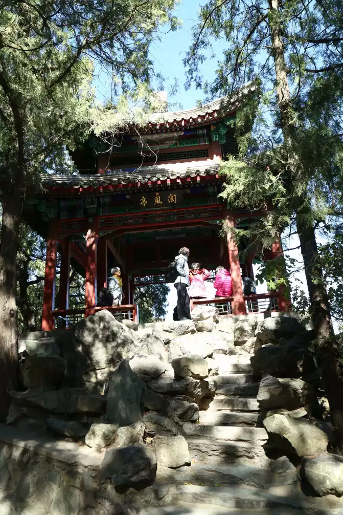 Originally, Shuangqing Villa was Songwu Yunzhuang within Jingyi Garden during the Qing Dynasty. It was burned down by the British and French forces in 1860 and later converted into a private residence by Xiong Xiling, the founder of the Xiangshan Charity Home. On March 25, 1949, after the Central Committee of the Communist Party of China and the headquarters of the Chinese People's Liberation Army moved from the northwest slope of Xiangshan, Shuangqing Villa became Chairman Mao's office and residence. On September 21, Chairman Mao moved from Shuangqing Villa in Xiangshan to the Juxiang Study in Zhongnanhai. This was the headquarters during the transition period from the People's Liberation War to national victory and a historical witness to the preparations for the founding of New China. Our generation holds immense reverence for the founders of New China. When we talk about these great men, we always address them respectfully as Chairman Mao and Premier Zhou, never by name. With reverence, we visited the offices and residences of Chairman Mao, Premier Zhou, Commander-in-Chief Zhu, and Comrade Shaoqi. We waited in line for half an hour to visit the Laiqingxuan Xiangshan Revolutionary Memorial Site, recalling Chairman Mao's immense love for his country and people, from his own family to his country and the world. This deepened our memory of the great leader Chairman Mao and the people's beloved Premier. The highest point of Xiangshan is Xianglu Peak, at 557 meters. This peak, though not particularly high for ordinary people, was a formidable obstacle for the imperial family. Climbing a flight of steep stone steps to the summit, even a strong wind couldn't stop the sweat from pouring down. Standing atop the mountain, the breeze washed away the sweat while I took in the panoramic view. Looking east, the crystal-clear Kunming Lake reflected the bustling city of Beijing like a mirror. It was October, and the mountains were a blanket of dark green. Though there were crimson leaves, these were only the first signs of autumn. A group of young, student-like people chattered and walked regretfully down the mountain. Their complaints reminded me of the two trees in front of the Qinzheng Hall. They stood in a place where purple air descended from the east, yet their crimson robes preceded the mountain itself, a true advertisement. In fact, the beauty of Xiangshan goes far beyond the crimson leaves. As an imperial garden steeped in history, rich in cultural heritage, and steeped in mountain forests, Xiangshan offers a unique blend of beauty, whether you enjoy blossoms in spring, escape the heat in summer, or explore the snowy landscapes of winter. The key lies in the visitor's mindset. Climbing through the tranquil green fields, deep valleys and dense forests, and atop steep peaks, stopping at Shuangqing Villa, Hongguang Temple, Yuxiang Pavilion, Xiangwu Cave, and Xianglu Peak, you'll be filled with the fragrant, elegant fresh air and the refreshing fragrance of books, a fragrance veiled in the pristine, natural tranquility of millennia. This freshness gently blends with the soul. The beauty of Xiangshan requires heartfelt appreciation and soulful perception.