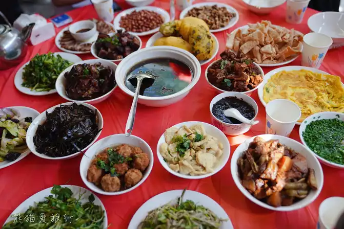 In the evening, enjoy scutellaria tea, hand-collected by villagers in the mountains, and enjoy an authentic pig's trotter feast. The pig's trotters are rich but not greasy, melting in your mouth. They're perfectly cooked and paired with homemade braised pork, stewed chicken, cabbage and bean curd, and the unique sweet and sour sauce. At nightfall, villagers from Changyucheng Village, who toiled during the day, gather on the stage in the backyard of Yongxing Temple. Some play drums and gongs, some dress up, and the audience cheers as they create an authentic community opera at the foot of the Great Wall. Changyucheng has a nearly 600-year history of community opera, performed annually during the first month of the lunar calendar and on various traditional festivals. Community opera evolved from Hebei Bangzi opera, but in Changyucheng, it has developed its own unique singing style.