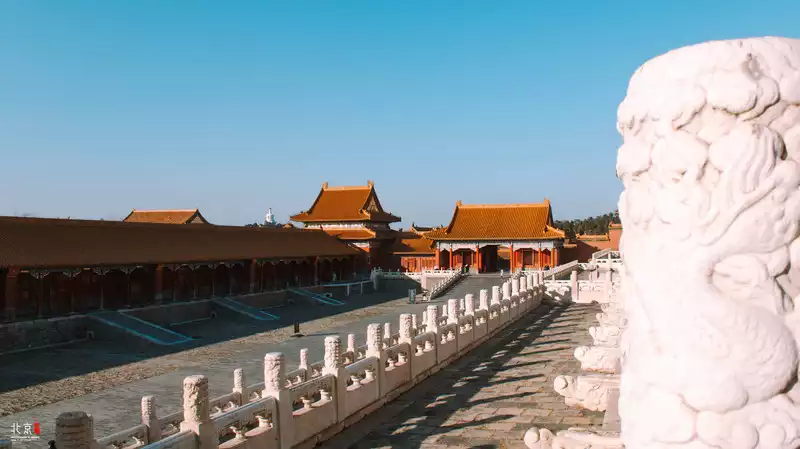 From the Hall of Supreme Harmony, you can see the White Pagoda in Beihai Park nearby.