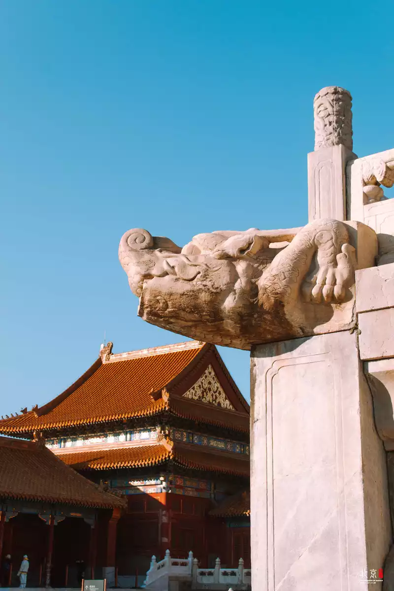 The two stone lions at the entrance are from the Ming Dynasty. Walking through the entire Forbidden City, these two are the most majestic.