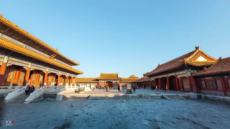 It was already 3pm, and the sunlight was very slanted. Many palace walls were reflected in large areas.