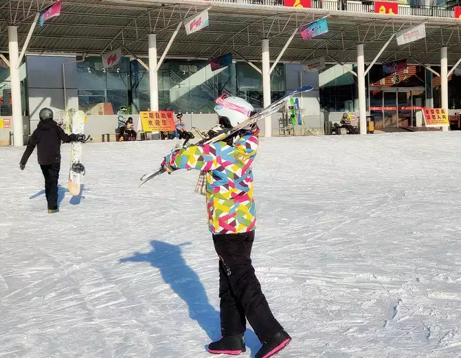 Beijing Yuyang International Ski Resort is about an hour's drive from downtown Beijing. Shuttle buses run between Dongzhimen and Ciqikou, making transportation very convenient. I have to say here that Yuyang’s epidemic prevention and security checks are very thorough. Before entering the parking lot, every passenger’s health status will be checked, and they will be checked again before entering the visitor center. Don’t be bothered by the hassle, as everyone is responsible for epidemic prevention. A year later, I returned to Yuyang Ski Resort. Same scenery, different mood. Upon entering the center, you'll need to pay a deposit to apply for a ski pass. There's also a self-service card, which eliminates the need to queue. It's incredibly convenient and time-saving. With a card in hand, you'll have everything you need for food, drinks, and fun. The card can be used to rent equipment, snowsuits, protective gear, lockers, and the cable car to access the advanced slopes. There are two beginner slopes, three intermediate slopes, and two advanced slopes, each with varying slopes and lengths. Magic carpets and cable cars are also available to cater to different levels of experience. There's a café on the first floor of the visitor center, decorated in a warm pink hue. A hot drink will instantly recharge your batteries. The second floor houses a clean and tidy buffet restaurant with a wide selection of dishes. There's also a food court outside, where you can refuel and enjoy the scenery after a long day. I tried skiing here last year, and this time I upgraded to snowboarding. The instructor was as humorous and thorough as ever, but I did fall more this time than last time. With skiing, you get used to it the more you fall. Luckily, I rented a little toy ski, so it didn't hurt at all.