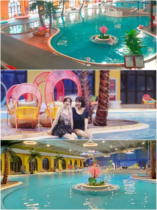 indoor hot spring water park. The two kids stared longingly at the pool through the glass for a long time, and they still yearn for it. Hearing the water park was open, we rushed over on our first night.
