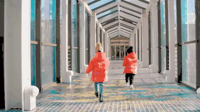 The glass corridor connecting the main building of the hotel and the amusement park is still the most suitable check-in spot for photos. It has become a catwalk for Summer and Mango.