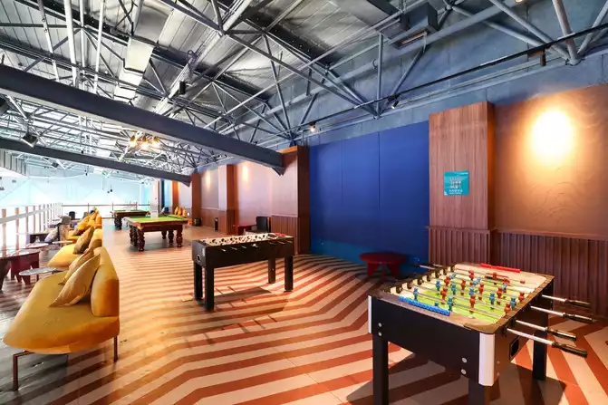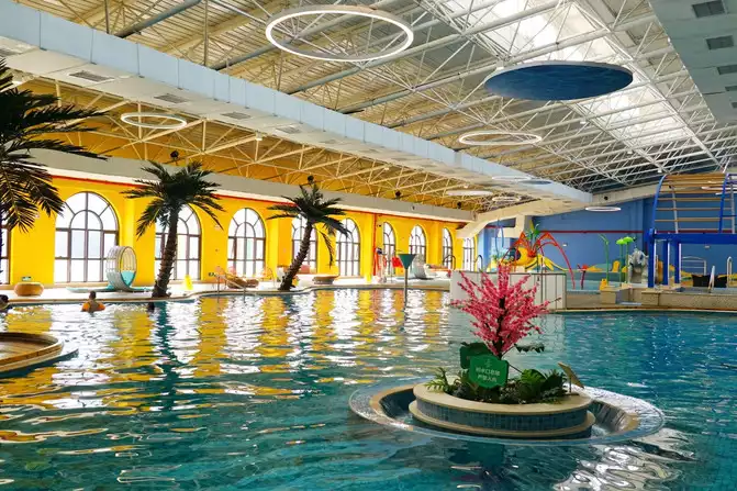 Not only will the kids enjoy this place because it has a place to play, but adults will love it too. While the kids are enjoying themselves with GO, we can relax and unwind. There are indoor natural hot springs, saunas, and fire dragon baths, all perfect for a relaxing soak. If you're looking to exercise, you can do what I did and choose the gym. They offer yoga, dance classes, aerobics, and more. Work up a sweat with the instructors in one class. Or if you prefer relaxing activities, there's karaoke, mahjong, darts, billiards, table tennis, a ski simulator, a golf simulator, a VR gaming area, and more—in short, whatever you're looking for is available.