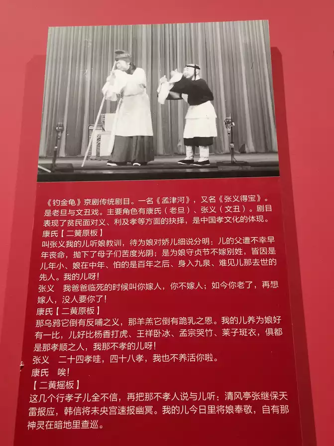 While visiting the exhibition commemorating the 70th anniversary of the founding of the Central Academy of Drama, I saw Kang's lyrics in "Fishing for Golden Toads," which were very novel. I've never heard a recording of them before, and I wonder if anyone will be able to restore them in the future. The lyrics are "Tell my son Zhang Yi to listen to your mother's teachings. I will explain everything to you in detail. Your father died tragically at an early age, leaving you and your children to suffer. I have remained a chaste mother and will not marry another man because you are young and I am middle-aged. I am afraid that a hundred years from now, I will be unable to see your deceased ancestors in the afterlife. My son! The crow has the intention to repay its parents, and the lamb has the grace to kneel and suckle its mother. I can compare my son to someone else. I am like Yang Xiang fighting the tiger, Wang Xiang lying on the ice, Meng Zong crying at the bamboo, and Lai Zi wearing a spotted coat. They are all filial people. What an unfilial son I am. "These filial sons didn't believe it at all, and then told their son about the unfilial man. Zhang Jibao of Qingfeng Pavilion was punished by thunder from heaven, and Han Xin quickly reported the Weiyang Palace to the netherworld. My son will pay his respects to mother today, and the gods will patrol in secret." With cultural relics as a reference, the museum displays the historical features from ancient times to the Ming and Qing Dynasties. These cultural relics are very shocking. Why shocking? In ancient times, mechanical equipment was very backward, and most of the work was done by hand. The hardworking, wise and intelligent ancients created one piece of exquisitely carved and beautiful art masterpiece after another. I specially looked at some cultural relics that I had heard about or remembered, and I was filled with endless admiration and sighs.