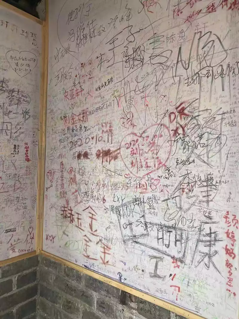 On the way from Beacon Tower 14 to Beacon Tower 15, there's a graffiti wall, perfect for tourists who want to leave their names on the Great Wall. Graffiti here won't damage the cultural relics, ensuring civilized graffiti. There's also a 360-degree panoramic camera on the nearby plank road. You need to scan a QR code to pay for it, and you can experience 720-degree panoramic photos and show off to your friends, hahahaha.