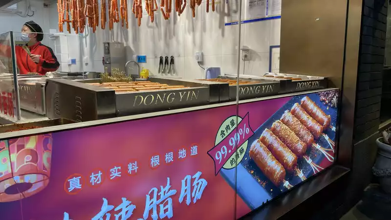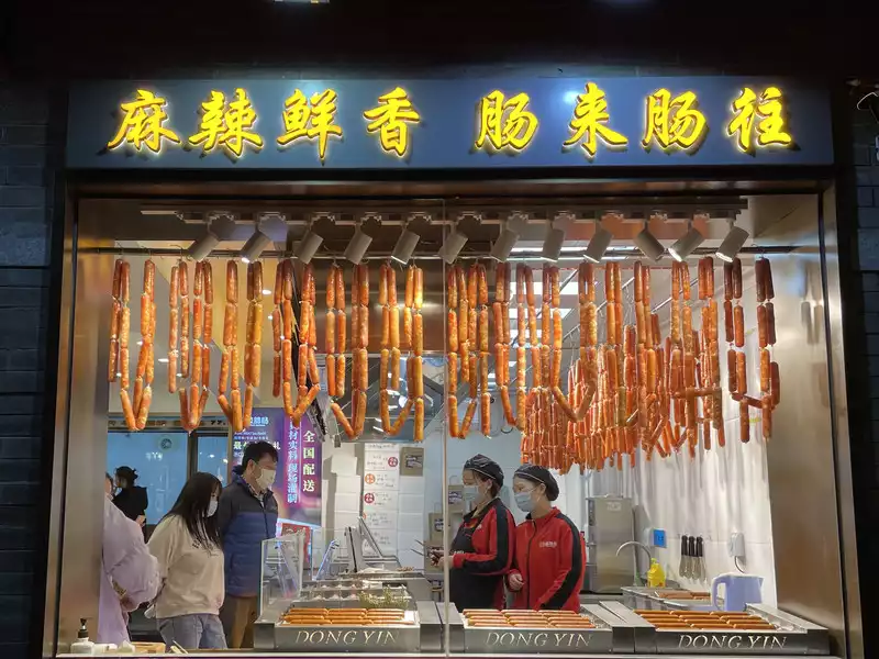 Actually, the main problem is that the snacks on this street are too expensive. A short grilled sausage costs 15 yuan!