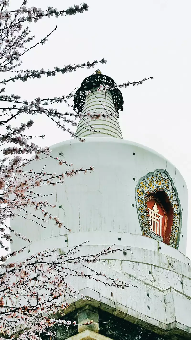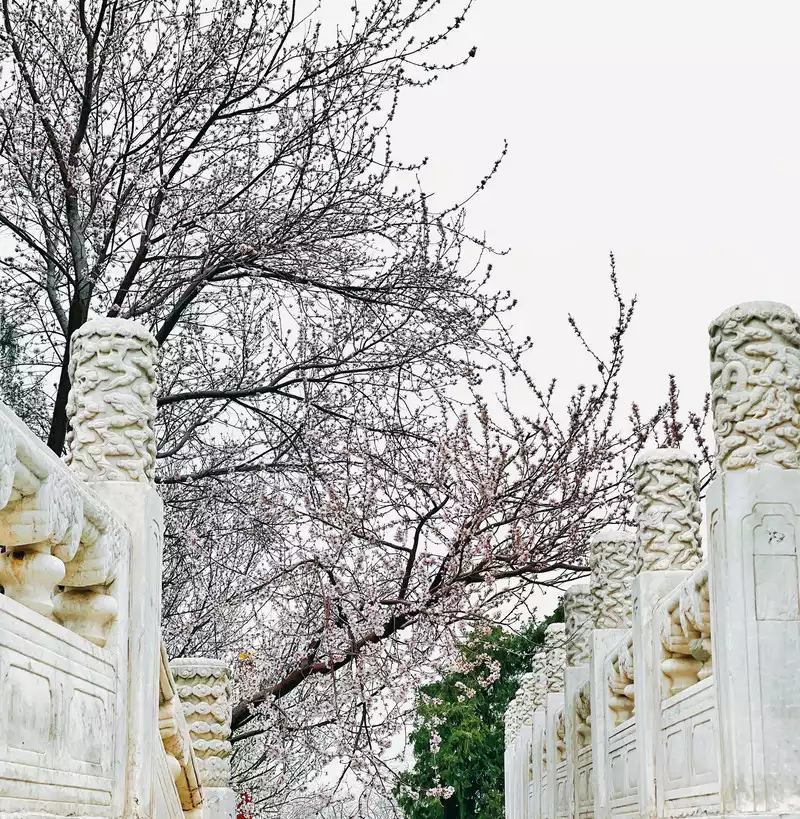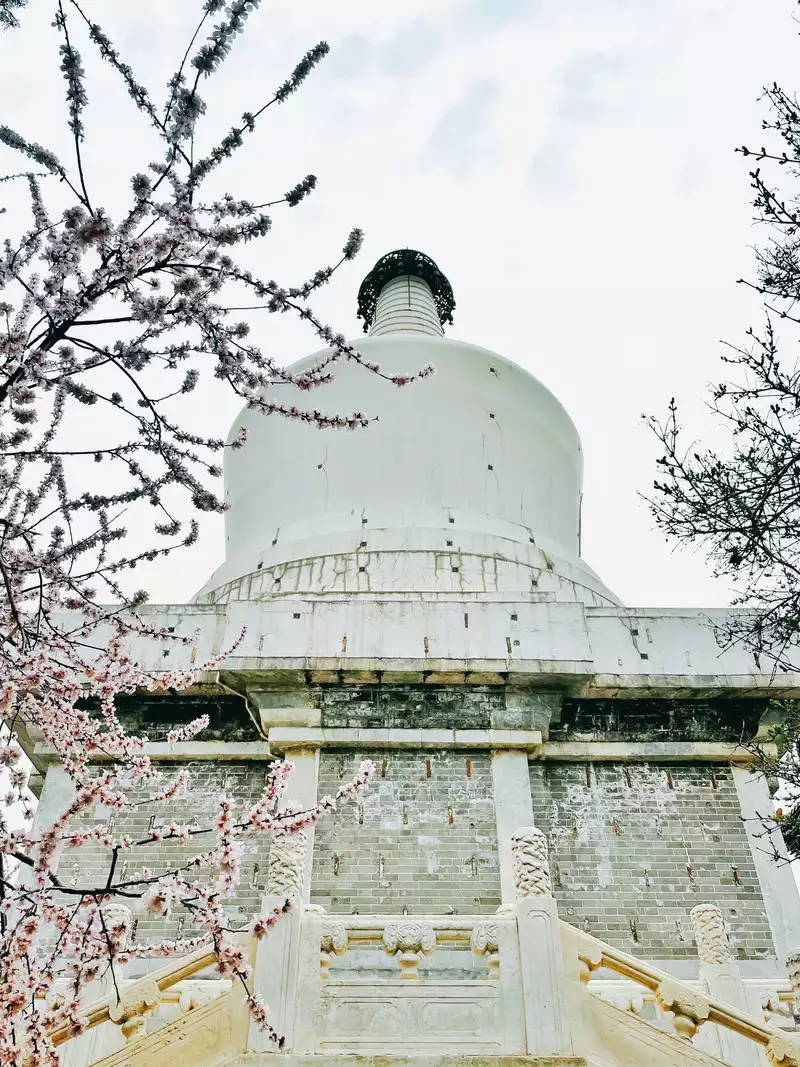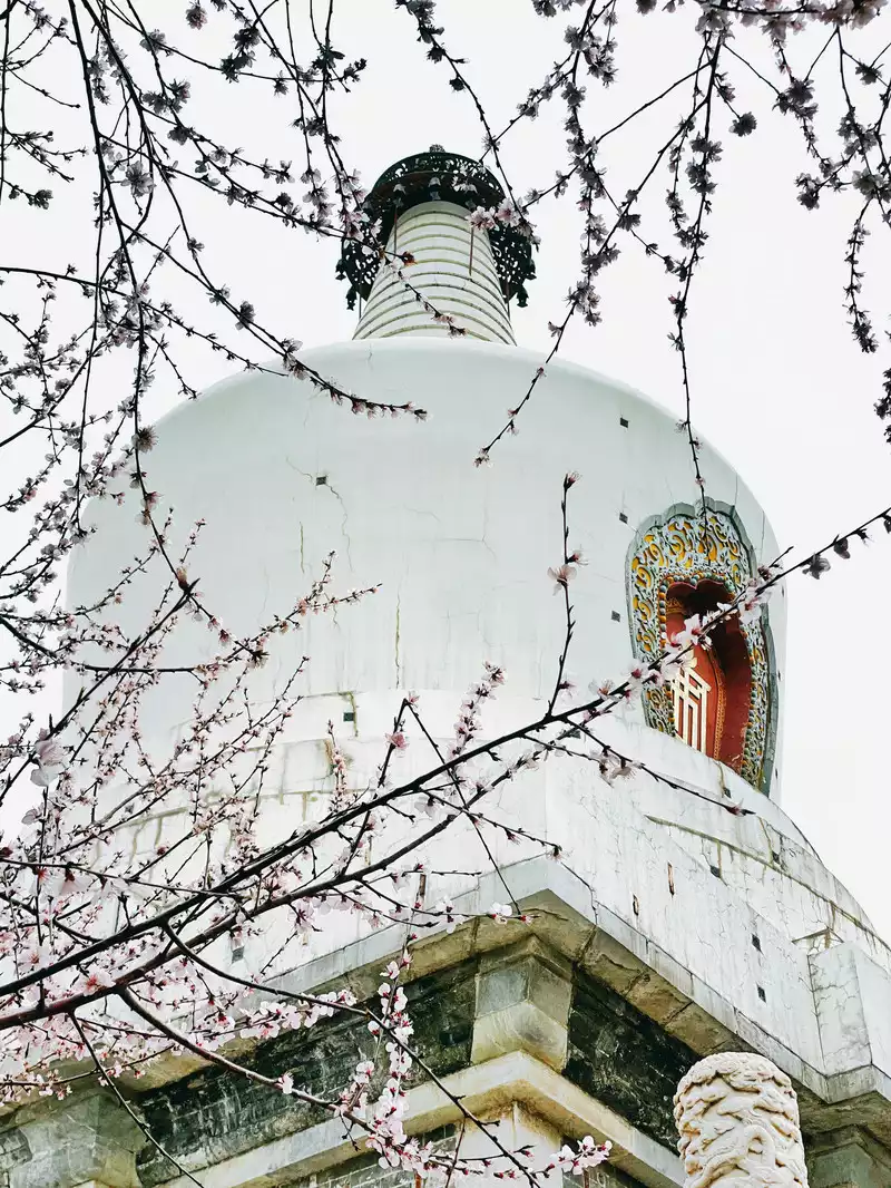 The peach blossoms to the west of the White Pagoda were already at their peak and were fading. I just happened to take some photos of the tail end of the blossoms, but unfortunately the weather was bad that day, so the photos didn’t turn out bright enough. The White Pagoda wasn’t white, and the peach blossoms weren’t vibrant. Beihai Park Beihai Park