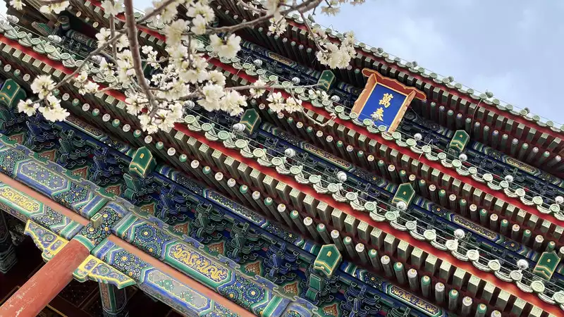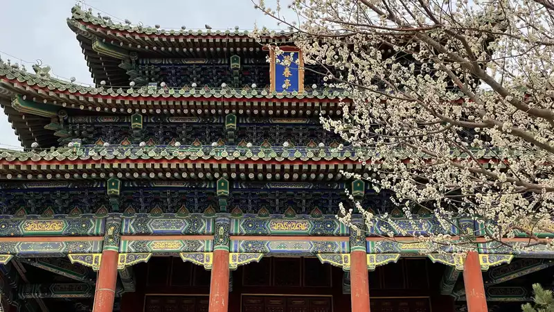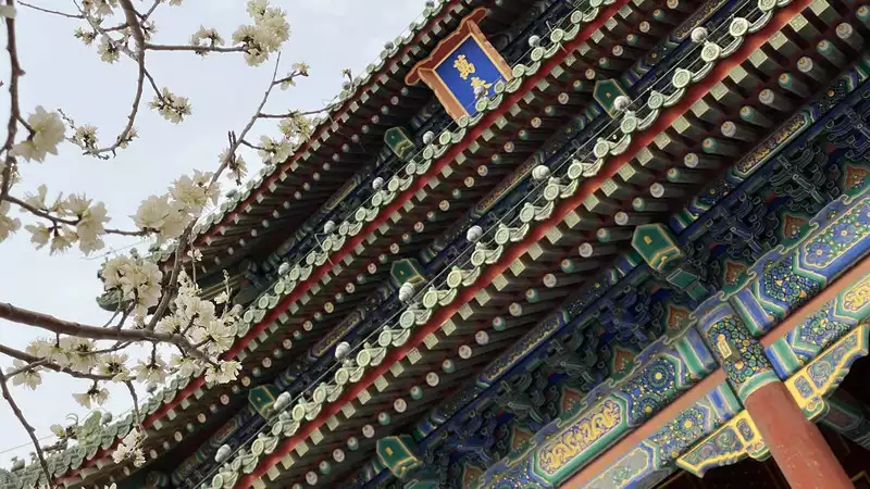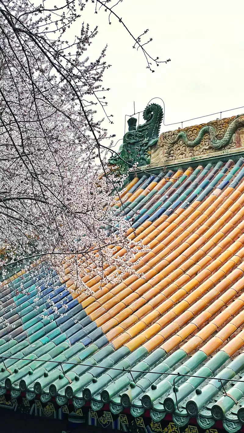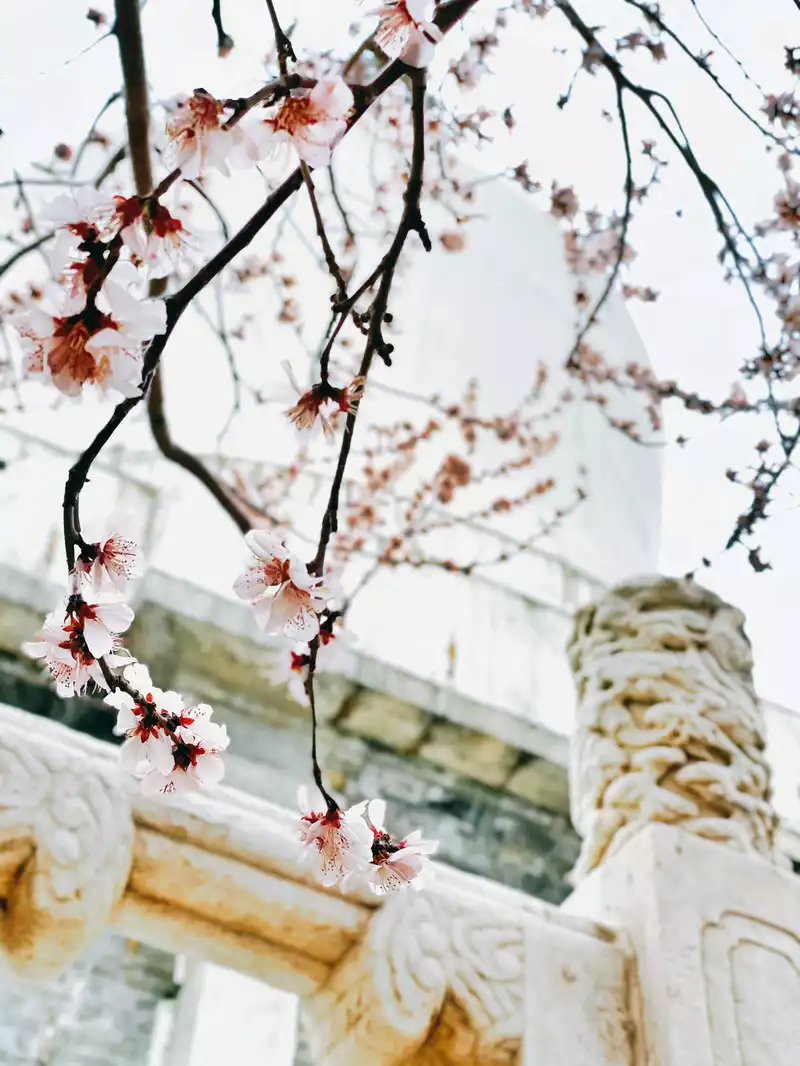 The peach blossoms to the west of the White Pagoda were already at their peak and were fading. I just happened to take some photos of the tail end of the blossoms, but unfortunately the weather was bad that day, so the photos didn’t turn out bright enough. The White Pagoda wasn’t white, and the peach blossoms weren’t vibrant. Beihai Park Beihai Park