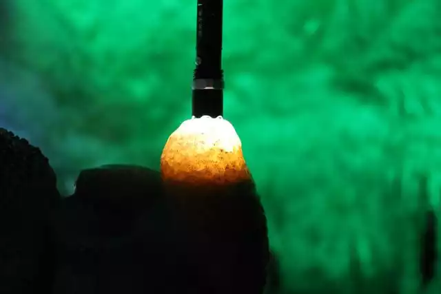 Located at the entrance to the fourth level, this stone flower, named "Fire Trees and Silver Flowers," is formed by the synergistic action of water seeping through the cave wall and capillary water. This patch of stone flowers, spread over an area over 30 meters long and 3 meters wide, consists almost entirely of stone flowers, stone hairs, stone branches, and stone chrysanthemums hanging from the cave wall, creating a diverse and varied stone flower landscape. The Cloud Basin is located in the middle of the fourth layer, within a sunken pond within the cave. It was formed by the combined action of dripping, splashing, and stagnant water. Floating on the surface are thin, ice-like flakes a few millimeters thick, known as "hydrocalcium films or cave rafts." Below the waterline, calcite crystals form various forms, including cave beads, cave cakes, and pool crystal flowers, forming underwater calcite clusters and underwater rock grapes. The Stalagmite, located at the exit of Shihua Cave, is formed by dripping water. At its top, there are three distinct dripping points: those with less impurities and slower crystallization are transparent, while those with more impurities and faster crystallization are opaque. Thus, a single stone gives rise to three distinct creatures, each a unique and beautiful sight.