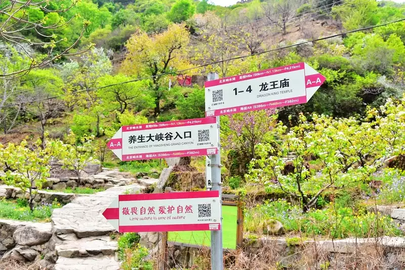 Xiangshui Lake Scenic Area boasts numerous peaks, abundant water resources, connected pools and waterfalls, and clear water. The area is also densely forested and rich in natural resources. With a vegetation coverage rate of 95% and a negative oxygen ion content of 9,300 per cm³, it is a National 3A-level tourist attraction, a Beijing Traditional Chinese Medicine Culture and Tourism Demonstration Base, a training base for the Beijing Agricultural Extension School, a social education platform, and a patriotic education center. The Xiangshui Lake Great Wall, built in 1404 during the second year of the Yongle reign of the Ming Dynasty, is renowned for its unique and treacherous terrain. The scenic area includes the "Tian She Jin Tang" cliff carvings, the majestic Moshikou Pass, the Great Wall's "Beijing Knot," the luxurious Jade Tower, and the towering Donkey's An Ridge. As a demonstration base for traditional Chinese medicine and cultural tourism in Beijing, the Xiangshui Lake Health Grand Canyon, stretching over 1,000 meters from the entrance to Longquan, features over 100 varieties of Chinese medicinal herbs, including honeysuckle, salvia miltiorrhiza, bupleurum, polygala tenuifolia, Panax notoginseng, and sedum. Each herb is presented on a sign. These herbs at the foot of the Great Wall, fed by spring water, are naturally of exceptional quality. The canyon boasts a diverse array of flowers throughout the year, including lilac, roses, peonies, Sichuan marigolds, chrysanthemums, and honeysuckle.