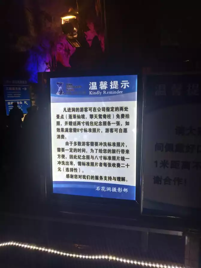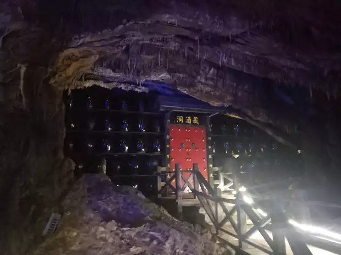 The third floor has a wine cave. There's a wine stall, but it's not pictured. They sell two types of wine, one jin (1 catties) for 78 yuan and one for 168 yuan. Purchase is optional. The vendor says it's wine from other places stored in the cave. This is the photo spot on the second floor, and also the exit. If you don't want to continue exploring the third and fourth floors, you can leave the scenic area from here. This was taken when leaving the scenic area. The place with lights is the photo spot. A blurry two-inch photo and an eight-inch laminated photo have been arranged according to the number, and you're just waiting to be paid. If you don't want the eight-inch photo, they will keep it and won't give it to you. I don't know what they will do with it in the future.