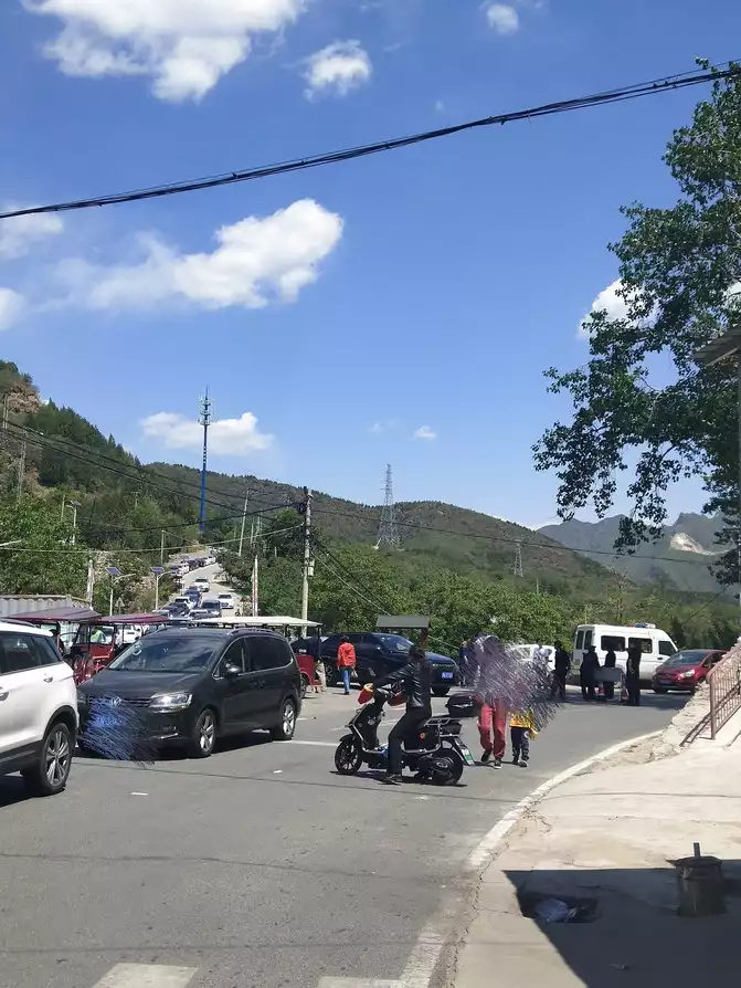 There's a three-way intersection when you get to the scenic area. This was taken when you were going down the mountain. Do you see the road below the signal tower? That's the road going up from the other side of the mountain. There are fewer people and cars, so there's no traffic jam when you go, and you can park your car there. There's a toilet at the entrance of the scenic area.