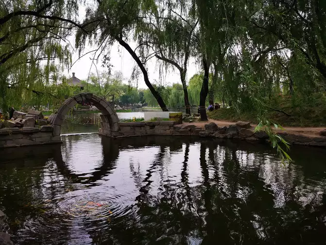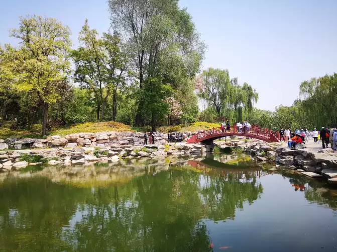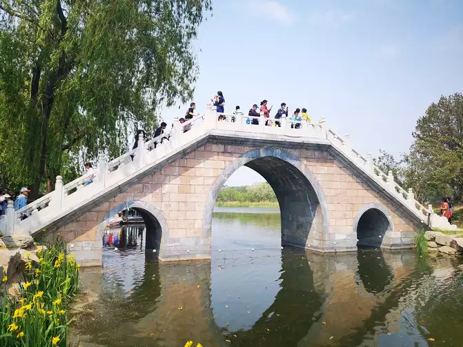 During its heyday, the park boasted numerous bridges. A ruined bridge stands as the sole remaining bridge after its destruction, bearing witness to its rise and fall, and to today's peaceful and prosperous times.