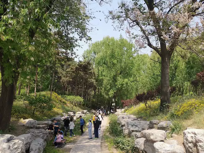 May 3rd was right in the middle of the May Day holiday. Seeing that tickets for that day were still available, I decided to join in the fun. My children said you were going to see people. On the subway, my daughter mentioned posts about people waiting in line for two hours at the South Gate to get in. However, our ticket indicated the entrance to Zhengjue Temple, so we got in smoothly without waiting in line. In front of the temple, there's a stone inscription with the words "Never Forget" written by Mr. Ouyang Zhongshi. Yes, that humiliating era of oppression and abuse must never be forgotten. Zhengjue Temple wasn't crowded either, so we first visited it. There's an exhibition of the twelve animal heads. Seeing these returned national treasures deeply resonated with the idea that a strong nation possesses dignity. Upon entering the Old Summer Palace, I was immediately captivated by the scenery. It truly was like "spring colors bloom inky black, the clear waters and small bridges become picturesque." Walking along the lakeshore, green willows swayed in the breeze, a breathtaking sight. Bougainvillea and chrysanthemums blossomed in unison, a truly breathtaking sight. "The willows reach the sky in endless green, the flowers reflect the sun in a striking red." At the food counter, I witnessed a bustling scene. Everyone seemed to be spending other people's money, scrambling to scan and pay. It truly is like the saying, "Fame is like clouds and smoke, gold is like earth, yet even a moment of joy is enough." The Old Summer Palace's waterscape is magnificent, with schools of fish swimming happily, mandarin ducks and wild ducks frolicking leisurely. Different boats are also distributed in different areas, making boating or riding on the lake a refreshing experience for visitors. Spending money on a boat trip is naturally enjoyable. It's truly "the scenery, both near and far, is breathtaking, and the leisurely boats empty your wallet." We took a boat from Kingfisher Pier to the Panorama Model Pier, and purchased an additional 10 yuan ticket to visit the "Panoramic Model Exhibition of the Old Summer Palace in Its Heyday." Even though it was just a model, I was deeply moved. If such a magnificent building still existed today, it would undoubtedly be a treasured treasure for all mankind. The landscape within the gardens, a blend of Eastern and Western elements, is a first-class grandeur. It truly is "a scene that should only exist in heaven, never seen again on earth." Next, we arrived at the ruins of the Western Building, which also charges an additional 15 yuan entrance fee. The buildings in the Western Building area were once the centerpiece of the Old Summer Palace, a perfect showcase of Western architecture adapted to Chinese culture. Today, they are a devastating sight. Seeing the remains of the famous Great Fountain and the Sea Tranquility Hall, I was immediately reminded of the poem, "The shame of the burning of the Old Summer Palace has yet to be avenged, and the hatred of the nation will never be extinguished. Riding an eagle, I trample over the palaces of eight nations. With aspirations to feast on the flesh of barbarians, I jokingly talk of drinking the blood of foreigners. When I am strong, I will rebuild the old mountains and rivers and face the heavens." The heads of the twelve zodiac animals, which were returned a few years ago, once stood in front of the Sea Tranquility Hall. Within the ruins of the Western Building, a structure has been restored to its original appearance: the Yellow Flower Array, also known as the Ten Thousand Flowers Array. This garden, modeled after a European palace, was where the emperor, his empresses, nobles, princesses, and other nobles held their evening parties. The numerous paths leading from the surrounding entrances to the central pavilion are fascinating and winding. I believe there is only one path to the center, and the rest are a maze.