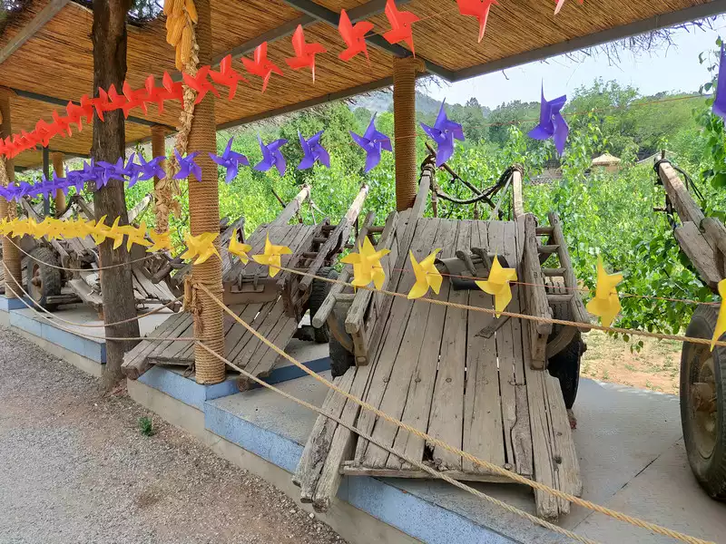 Farming: The scenic area is filled with many cultural relics related to production and life, including tractors, wooden carriages, plows, rakes, bamboo baskets, hoes, and shovels.