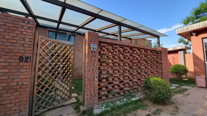 Beijing No. 536 Courtyard Homestay was once a steel rolling mill. Designers have since redesigned and renovated the building, preserving its original structure and machinery while incorporating modern decor, creating a seamless blend of industrial and rural styles. The brick structure exudes an industrial feel, while the courtyard still displays remnants of former machinery. Green ivy adorns the concrete pipes, creating a Hobbit-like hut. The courtyard is planted with vibrant roses and vegetables in a variety of colors. At 536 Boutique Homestay, you can choose between a standard room or a private courtyard, which can accommodate 7-9 people. Sitting in the small courtyard of each standard room, you can enjoy the scenery. Each room has its own private entrance and courtyard, and there's a Jacuzzi bathtub in the open-air courtyard. These rooms typically have three or four bedrooms, perfect for groups of friends or families. The public spaces here are also exceptionally large, with a large lobby large enough for up to 60 people. Afternoon tea and breakfast are served here daily. There's also a viewing terrace upstairs with views of the mountains and the Great Wall. At sunset, book dinner in advance and enjoy the evening breeze, the twinkling lights, the long table filled with exquisite food, and the perfect spot to take in the views of the Great Wall and the mountains. It's the perfect spot for a casual chat with friends! This B&B also has a gym, a separate party area, and private parking, making it perfect for a family vacation or a get-together with friends!