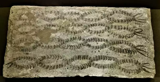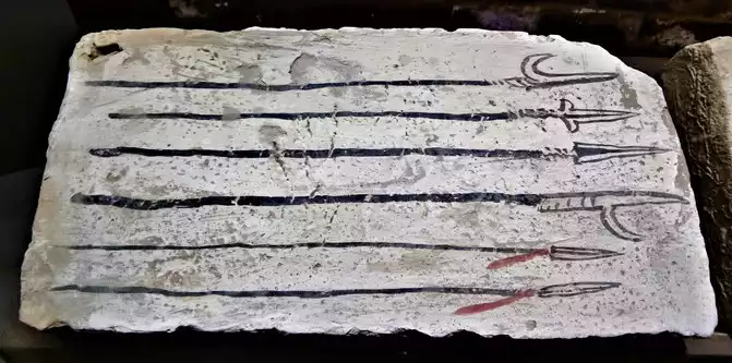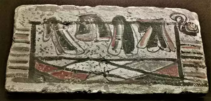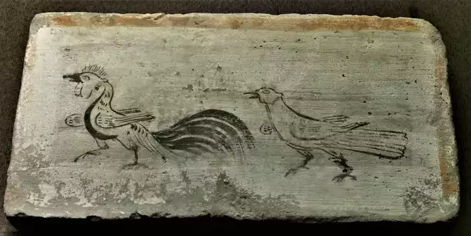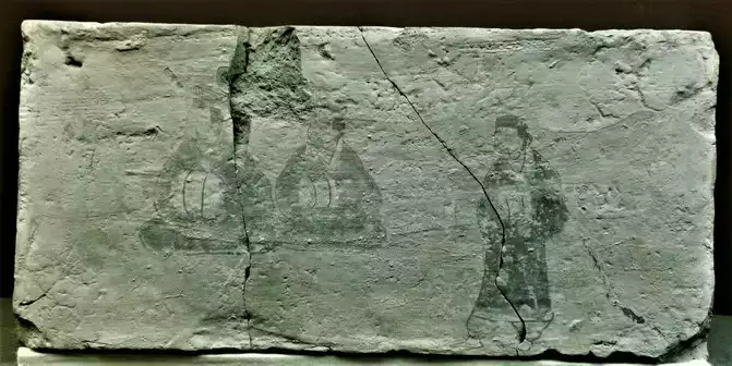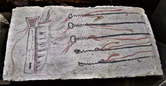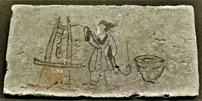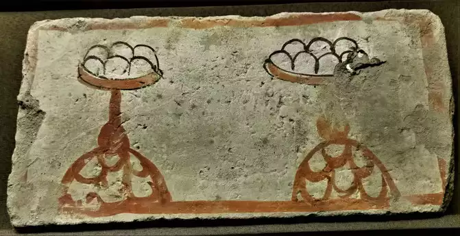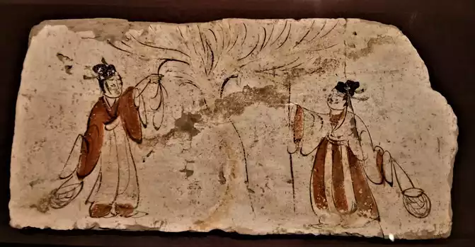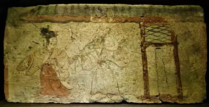 The bricks are painted with silk bundles, which symbolize the wealth of the tomb owner.