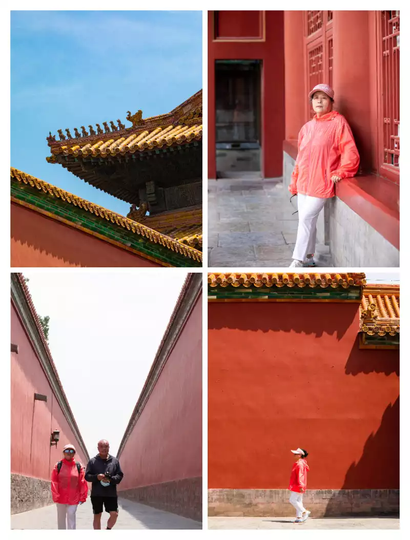D3 The Palace Museum. If you want to watch the flag-raising ceremony, search on WeChat for the specific time and plan your trip accordingly. Take the subway to Tiananmen Square, then go through security, take some photos in Tiananmen Square, and then take the underground passage to the Tiananmen Tower. Behind Tiananmen is the Palace Museum. Even after making a reservation, you still need to go to the left for pre-screening before entering with your ID card. There are many experts online who can help you with the specific route. After exiting Shenwu Gate, there's an underground passage on the left that leads to Jingshan. Tickets cost two yuan. If you still have energy left, you can stroll around Wangfujing. Since you're already here, even though it's just a commercial street, you can still enjoy the Beixinqiao Luzhu you've been craving.