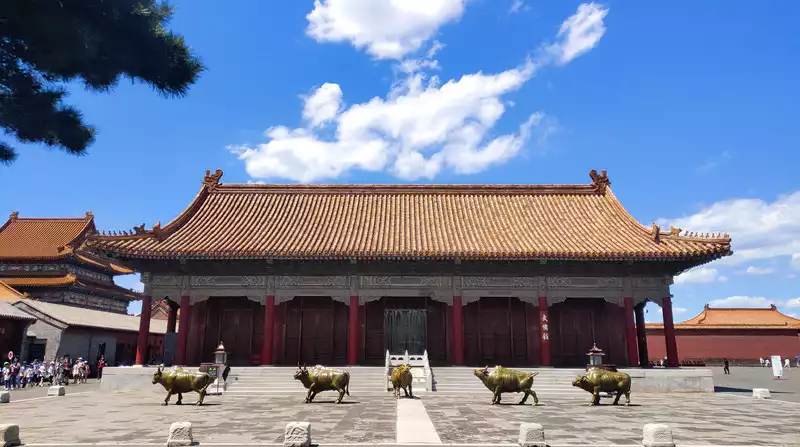 For half a day, following the guide's explanations, I gained a deep understanding of the historical allusions and cultural relics. I traversed most of the Forbidden City, snapping over 700 photos. Sometimes, to get a satisfying shot, I had to wait for the crowds to disperse under the scorching sun. To give the national treasures a unique display, I politely waited for the elderly and children to finish admiring them, taking every opportunity to snap photos with swift eyes and hands. Haha, I finally understand why professional photographers are so heavily armored and have such dark skin. Time constraints prevented me from joining you in photographing the magnificent golden dragon. With such a busy schedule, I've rarely had the time to calm down and organize my work. I can't rush or skimp on it, but I'll do it with all my heart. Looking back today, the scenes are so moving and vivid, and it was a worthwhile trip.