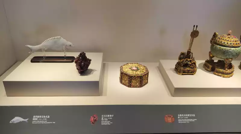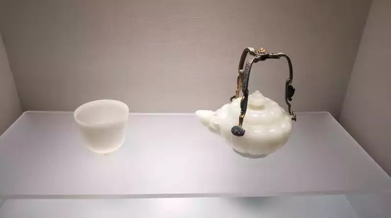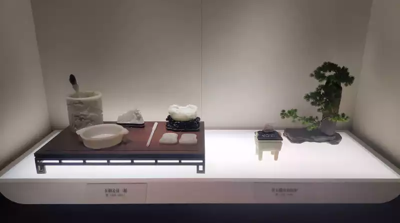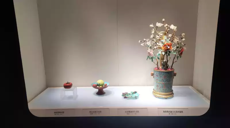 After the Wannian Ruyi, there are a variety of lifelike jade carvings and exquisite porcelain.