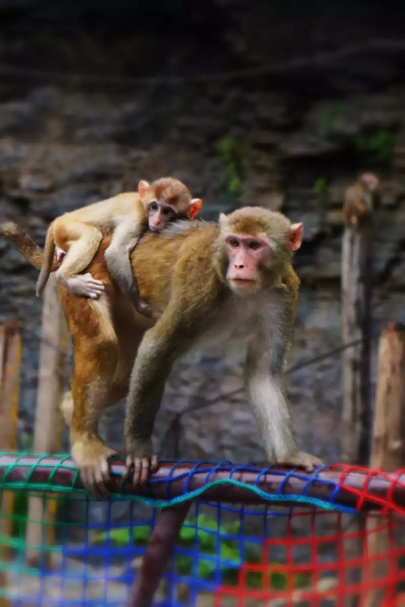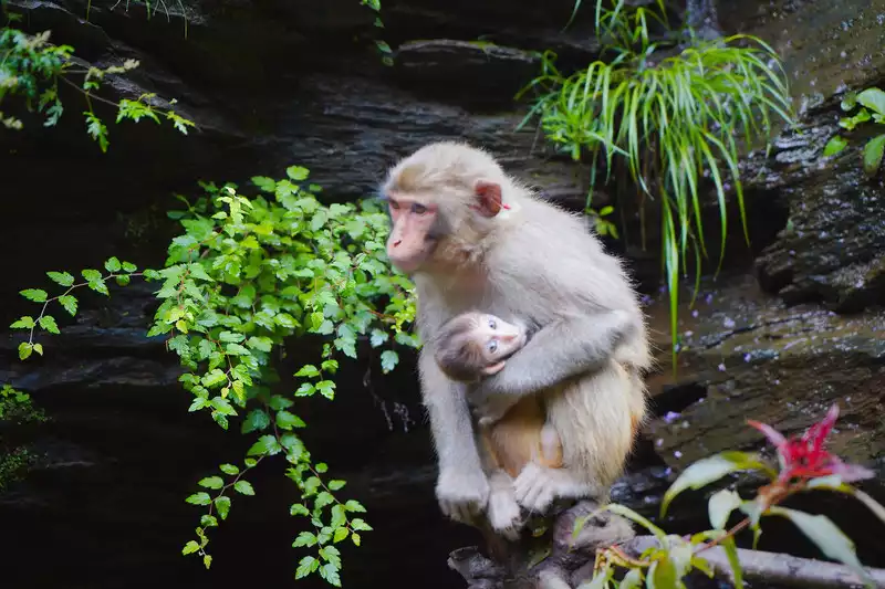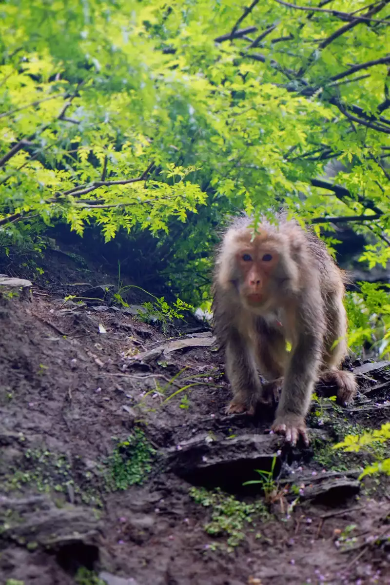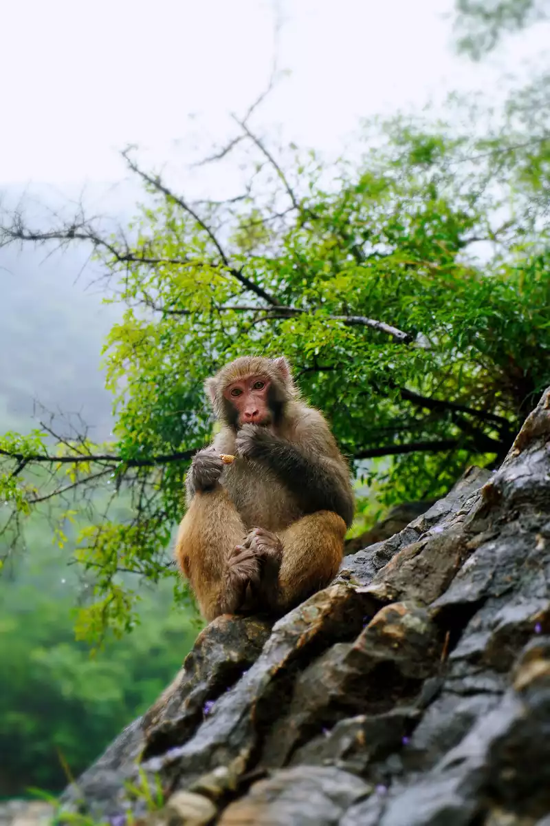 Walking along the winding Monkey Valley trail, you can see macaques everywhere. These monkeys are unlike monkeys in other places. They are well-behaved and cute. They don't snatch food and are polite to tourists. When feeding them, they will gently take the food away from the tourists' hands, which is extremely gentle.