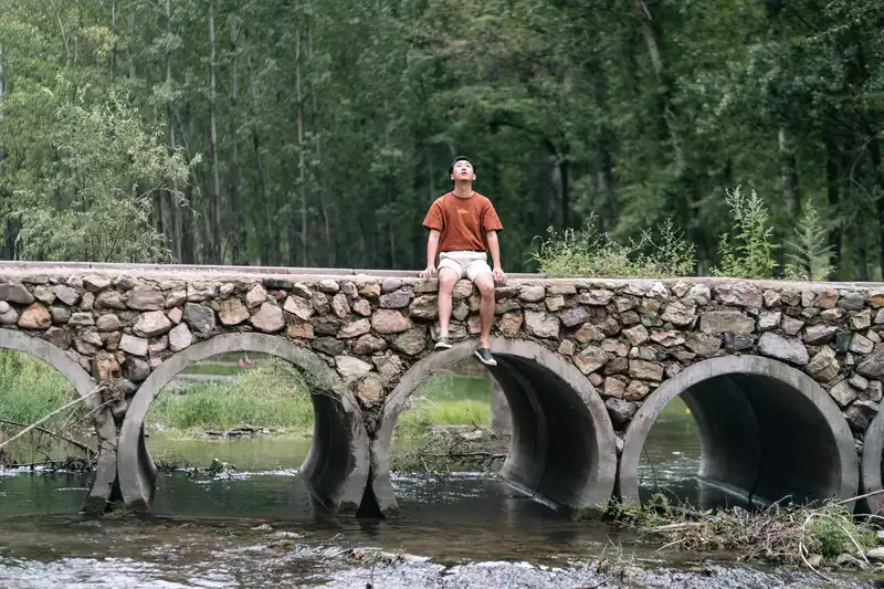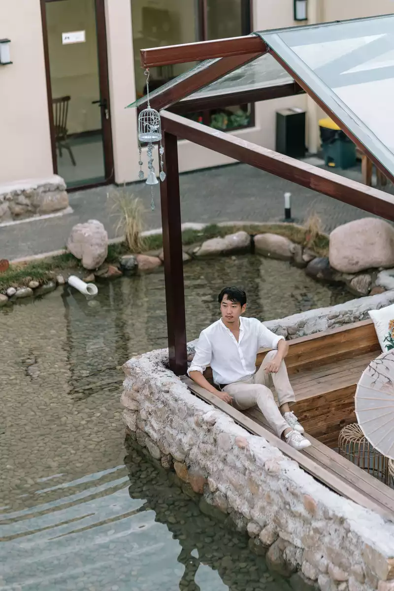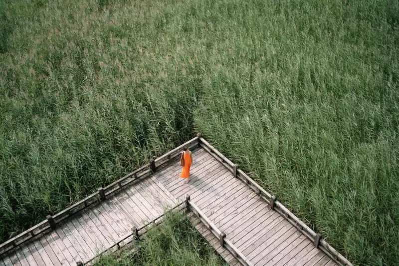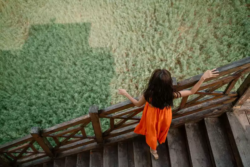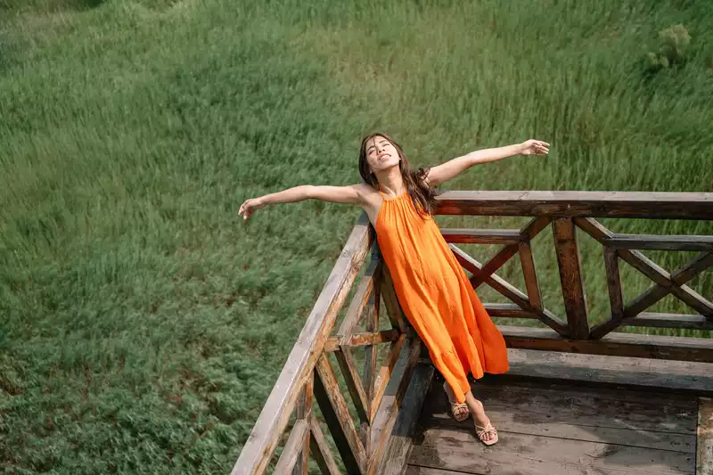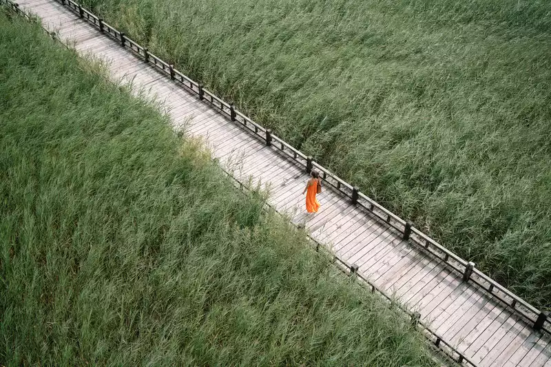 3. Relax and lean back at the corner of the wooden plank road. It is the perfect visual center of the camera~