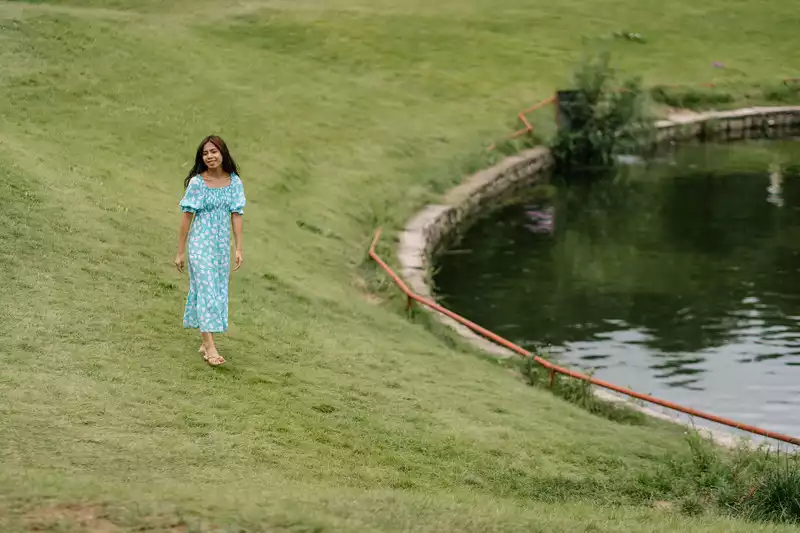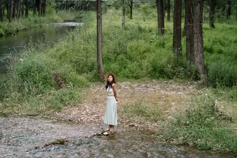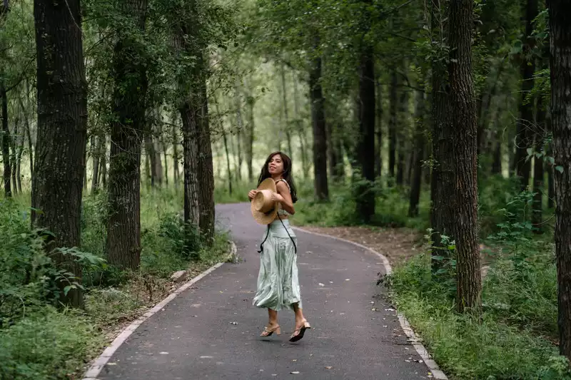 1. Standing in the middle of the small path and wooden boardwalk leading to Wanghu Tower for photos—it really recreates Hayao Miyazaki's summer vibe!