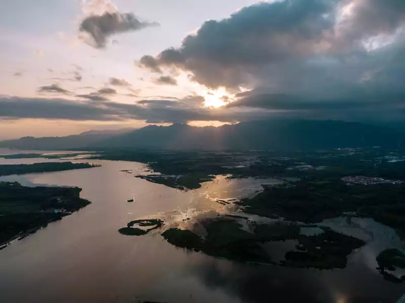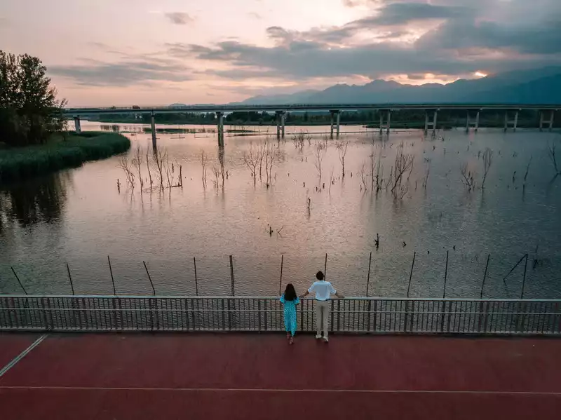 2. Photographers can shoot directly from Wanghu Tower, creating a drone-like effect. Then, just stroll along the boardwalk for a few steps and enjoy the panoramic views!