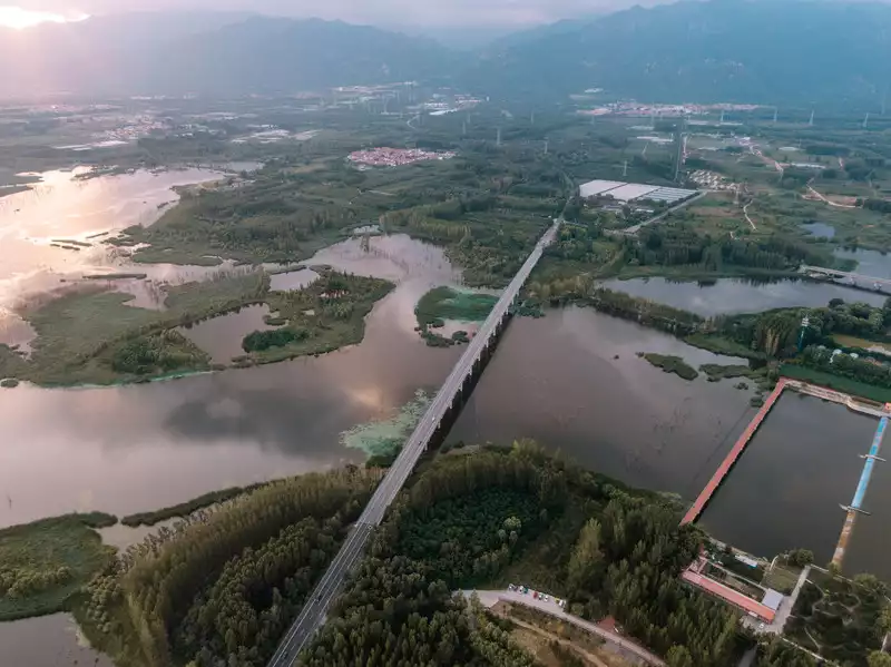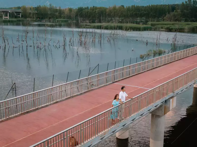 The scenery along the way is endless. From the city to the idyllic scenery outside Beijing, we arrived at our first stop: Wild Duck Lake Wetland Park. Here are large areas of reeds and lotus flowers. During the annual migration season, many birds can be seen stopping here, which is how the Wild Duck Lake got its name.