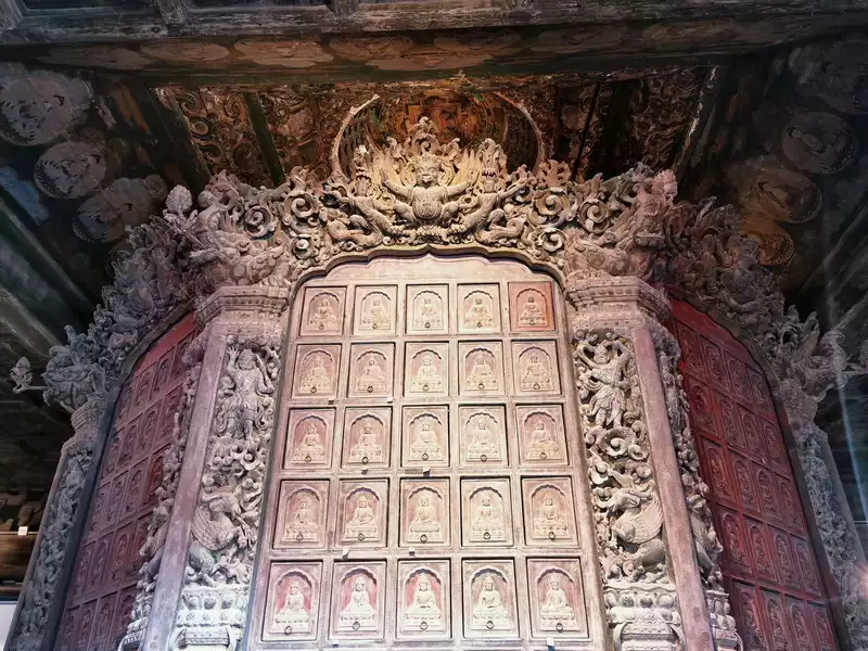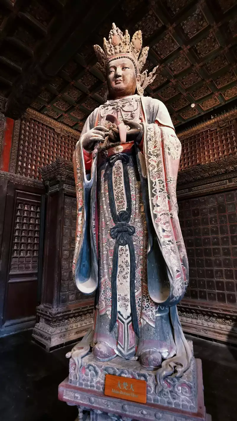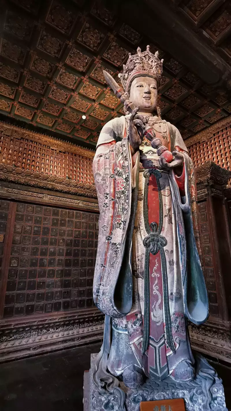 What’s even more amazing is that there is a Vairocana Buddha statue hidden on the top of Chakravartin, which can only be seen from a specific angle, so don’t miss it. Although the Buddha statue is hidden deep and the whole body cannot be seen, it is vaguely visible that the Buddha has a tall bun, broad shoulders and a broad face, and has the "wisdom fist seal", which has the artistic characteristics of the Yongxuan palace statues of the Ming Dynasty.