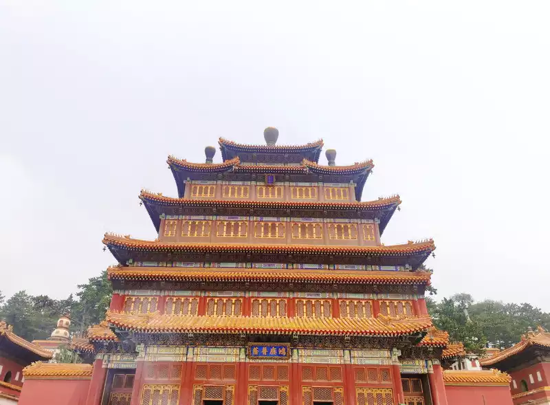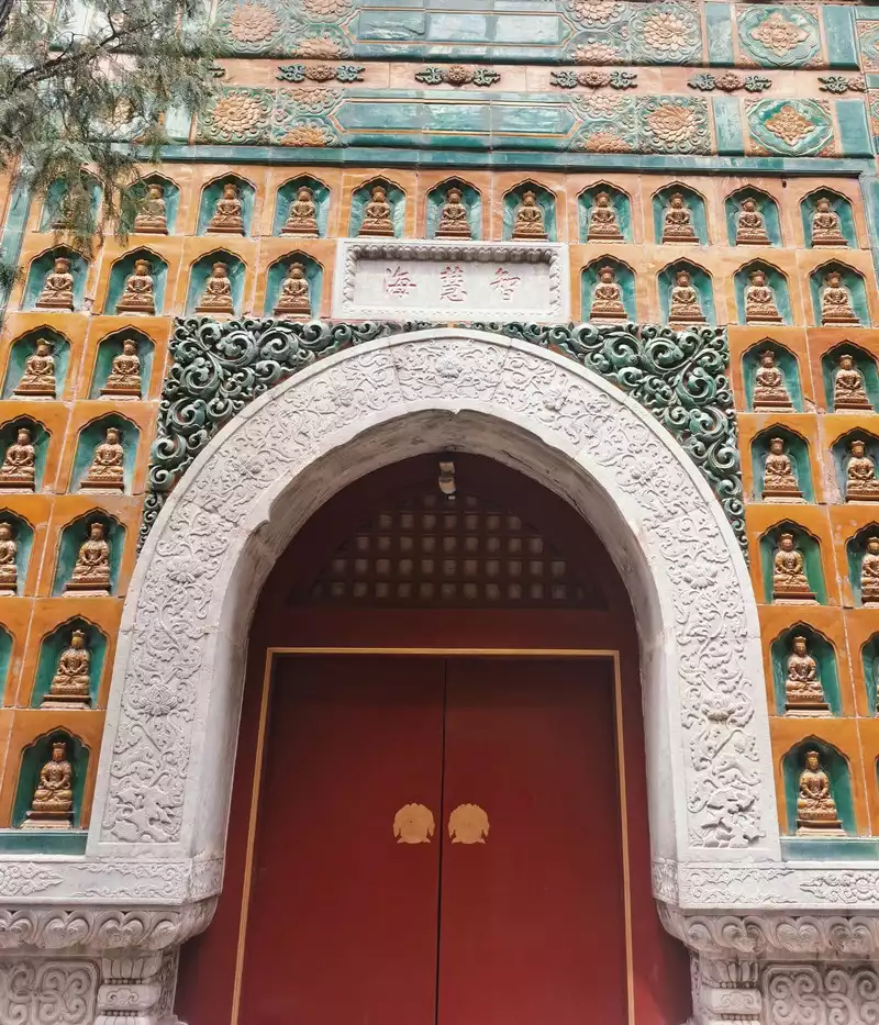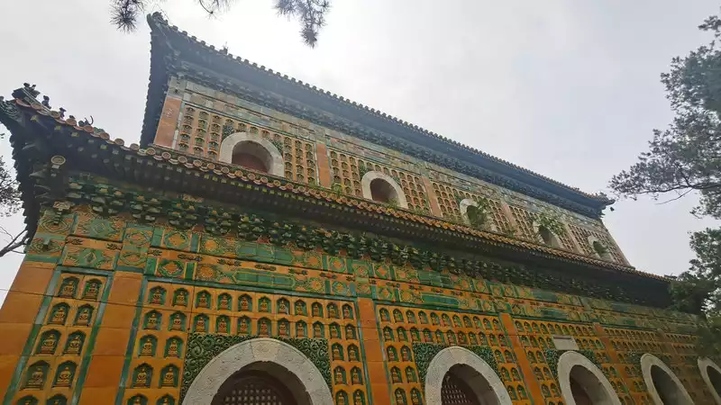 Wisdom Sea is the religious building at the highest point of Wanshou Mountain. It is a beamless Buddhist temple made entirely of bricks and stones, and is composed of an arch structure. The outer layer of the building is entirely decorated with exquisite yellow and green glazed tiles, and the upper part is capped with a small amount of purple and blue glazed tiles. The more than a thousand glazed Buddhas embedded in the outer walls of the hall are even more distinctive. Although the building looks very much like a wooden structure, it actually does not have a single piece of wood. It is all made of stone bricks and has no load-bearing purlins, so it is called the "Beamless Hall". And because the Buddha Immeasurable Life is enshrined in the hall, it is also called the "Infinite Life Hall". The term "Sea of Wisdom" is a Buddhist term, and its original meaning is to praise the Buddha's wisdom as the sea and the boundless Dharma. Due to the epidemic, tourists are not allowed to enter the Wisdom Sea, so they can only admire the appearance.