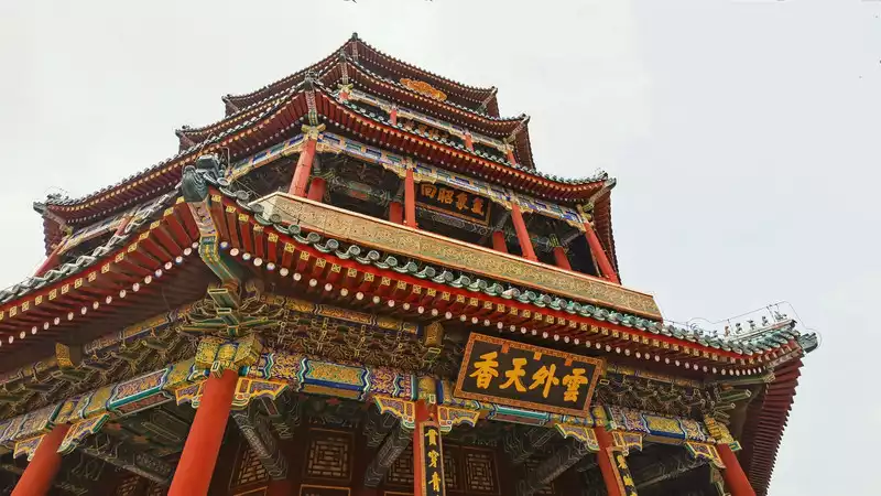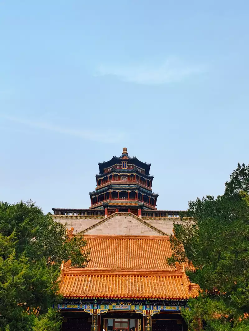 Foxiang Pavilion is located on the mountainside in the center of the front mountain of Wanshou Mountain. It is built on a square platform with a height of 21 meters. It is a building with eight sides, three floors and four eaves. The pavilion is 41 meters high. There are 8 huge iron pear wood Optimus Pillars in the pavilion. The structure is complex and it is a masterpiece of classical architecture. After the original pavilion was burned down by the British and French forces in the 10th year of Xianfeng (1860), 780,000 taels of silver were spent on rebuilding it in the 17th year of Guangxu (1891). It was completed in the 20th year of Guangxu (1894) and was the largest project in the Summer Palace. The "Jie Yin Buddha" is enshrined in the pavilion for the royal family to burn incense here. The steps up to the Buddhist Incense Pavilion were high and steep. As I climbed up, I was wondering how Lafayette got up to the Buddhist Incense Pavilion. Then I thought about it, Lafayette had someone to carry her up, so there was no need for her to do it herself. She was just suffering for those who carried her.
